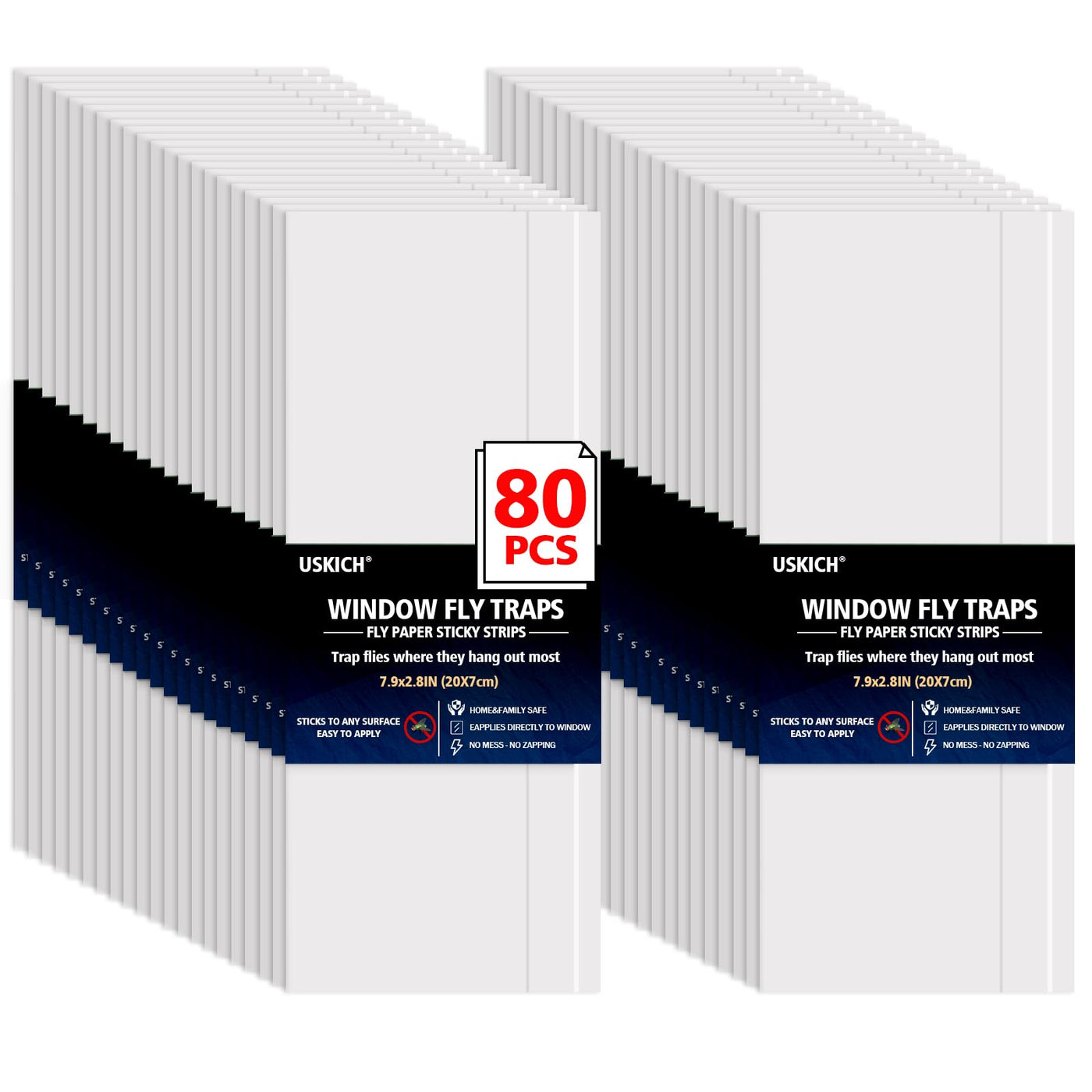 Window Fly Traps For Indoors, 80 Pack Clear Fly Paper Sticky Fly Strips For Home Houseflies Waterproof Fly Catcher Lady Bug Trap