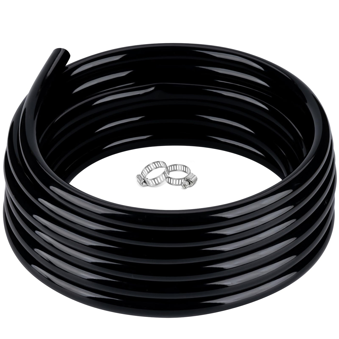 Zy-Hosetube Black Vinyl Tubing 1/4 Id 3/8 - 50 Feet Flexible Plastic Pvc Tube Hybrid Hose Transfer Water Air Oil For Pond Fountain Garden Waterfall, Non-Toxic And Bpa Free, With 2 Hose Clamps