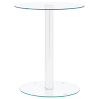 This stylish coffee table adds a modern look and enhances your existing interior decor and living space. The accent table is made of tempered glass with a rough grinding finish and aluminium tube, making it stable and durable. This sturdy tabletop can be used to hold your drinks or any other items. It can also serve as a side table, telephone stand and sofa table etc. Colour: Transparent and silverMaterial: Tempered glass with a rough grinding finish, aluminiumDimensions: 40 x 50 cm (Diameter x H)Tabletop thickness: 6 mmBottom diameter: 35 cmAssembly required: Yes