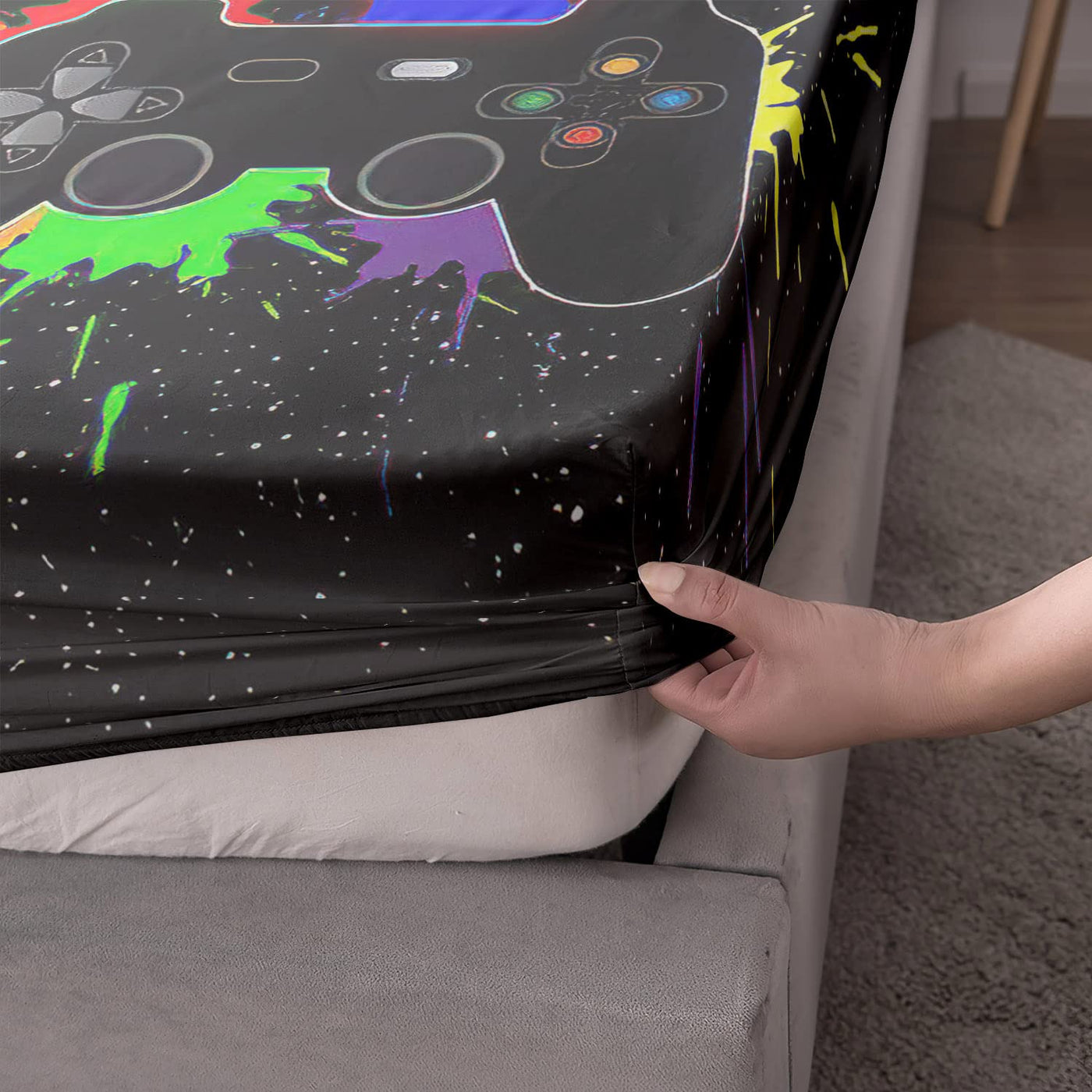 Ailonen Gamer Fitted Sheet Twin Size,Gaming Bedsheets Set,Gamepad Bed Sheet Set For Boys,Boys Video Games Bedding Set,1 Fitted S