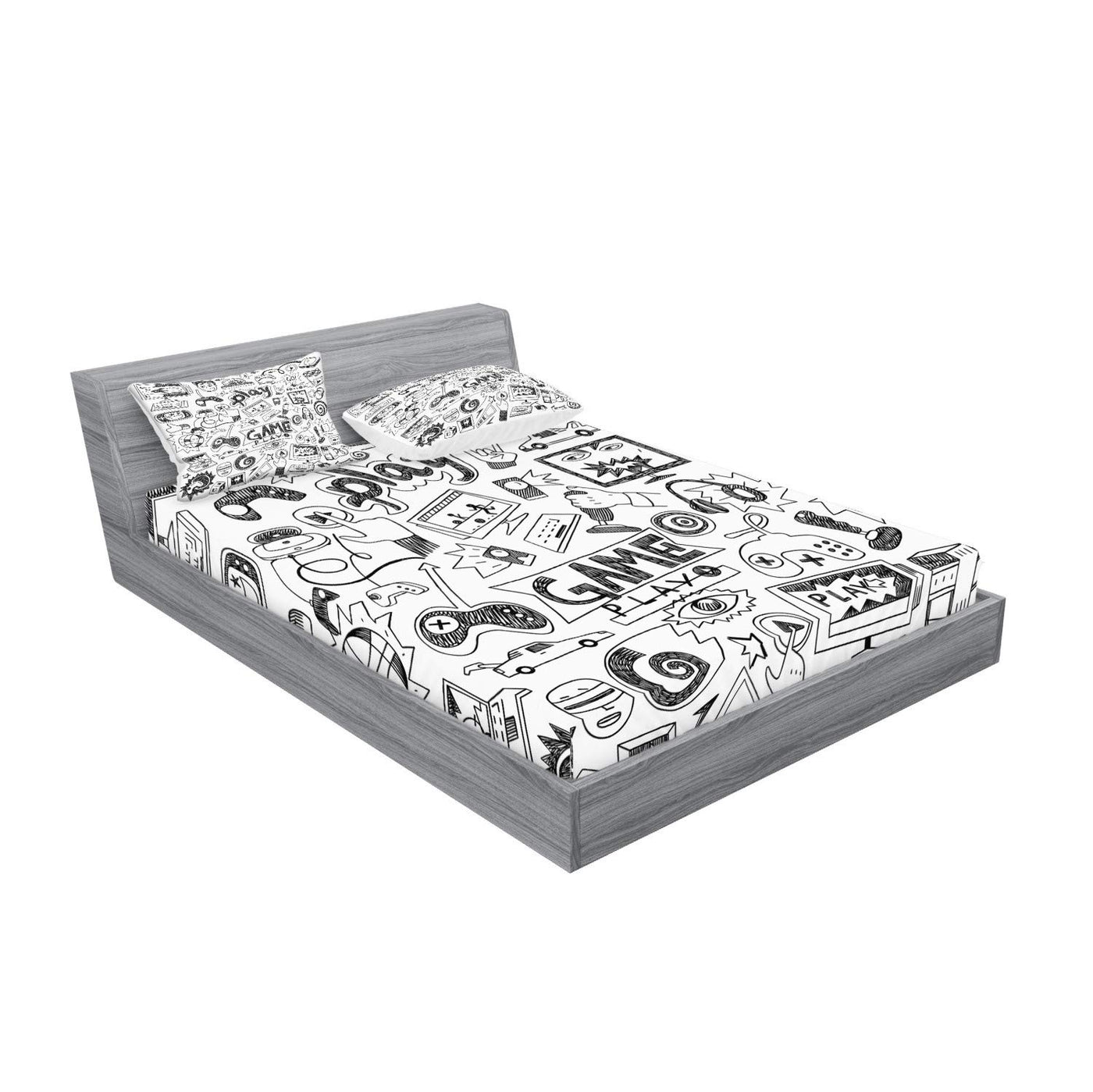 Ambesonne Video Games Bedding Set Sheet & Covers Bedroom Dorm Play Room Decor Monochrome Sketch Style Gaming Design Racing Gamer