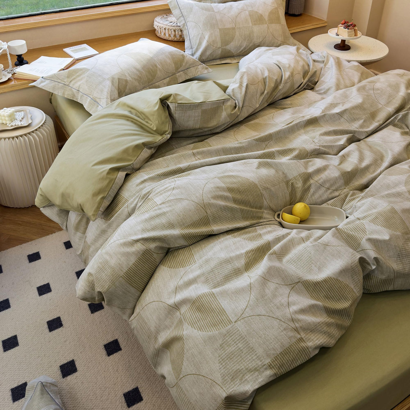 Aojim Green Simple Style Duvet Cover Set For Kids And Adults, Comfy Pure Cotton Comforter Cover Set 3Pcs, 1 Ab Sided Quilt Cover