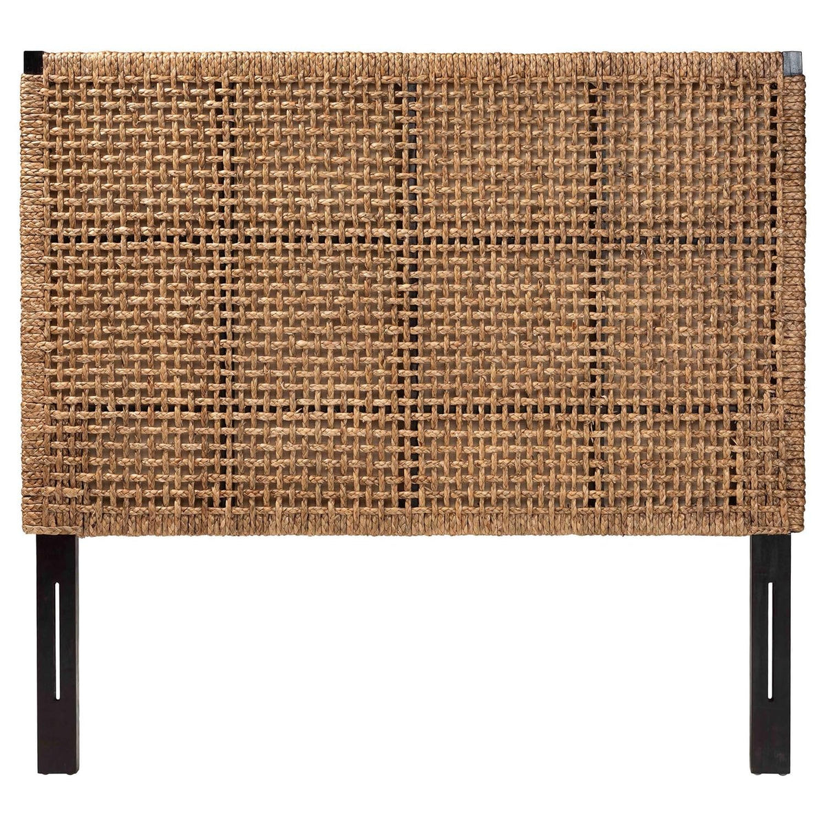 bali & pari Alise Seagrass and Dark Brown Mahogany Wood King Size Headboard