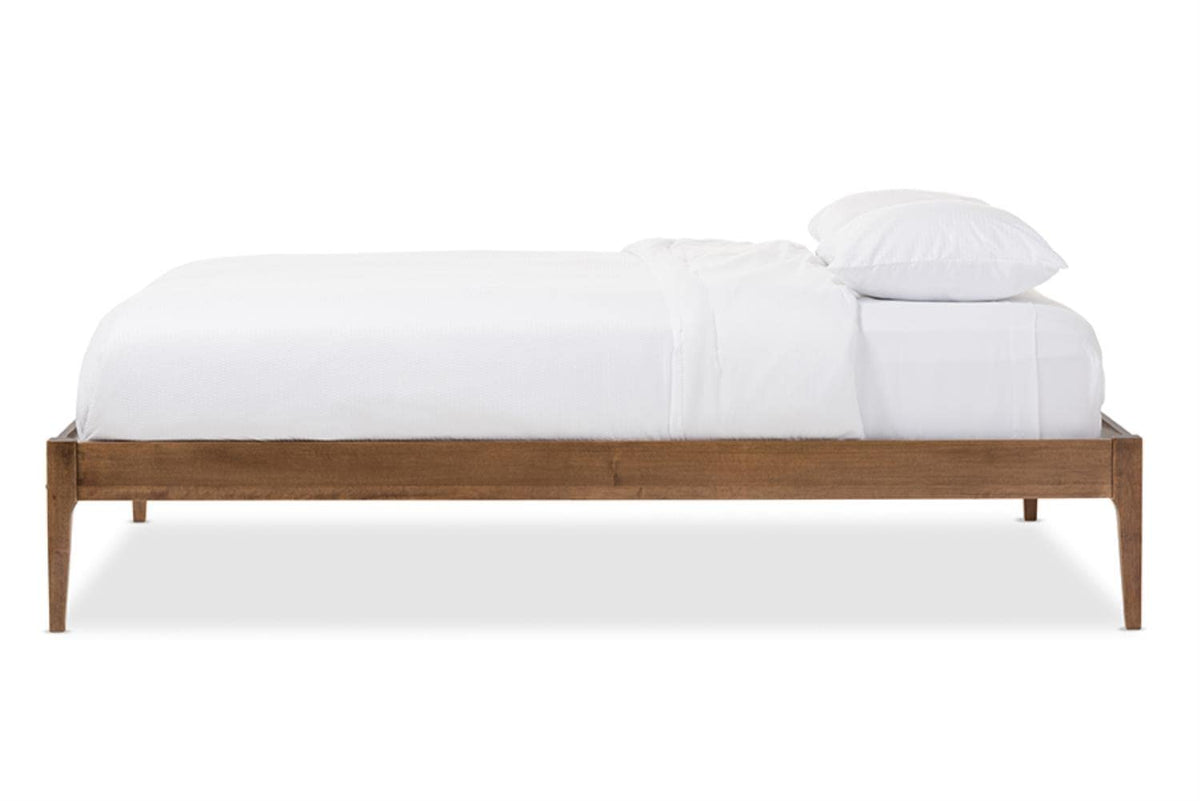 Baxton Studio Bentley Mid-Century Modern Walnut Finishing Solid Wood Queen Size Bed Frame