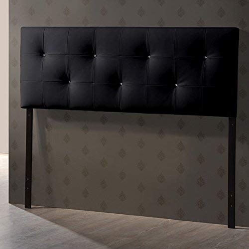 Baxton Studio Dalini Modern and Contemporary Queen Black Faux Leather Headboard with Faux Crystal Buttons