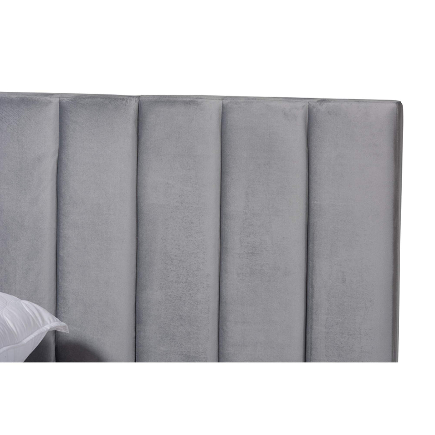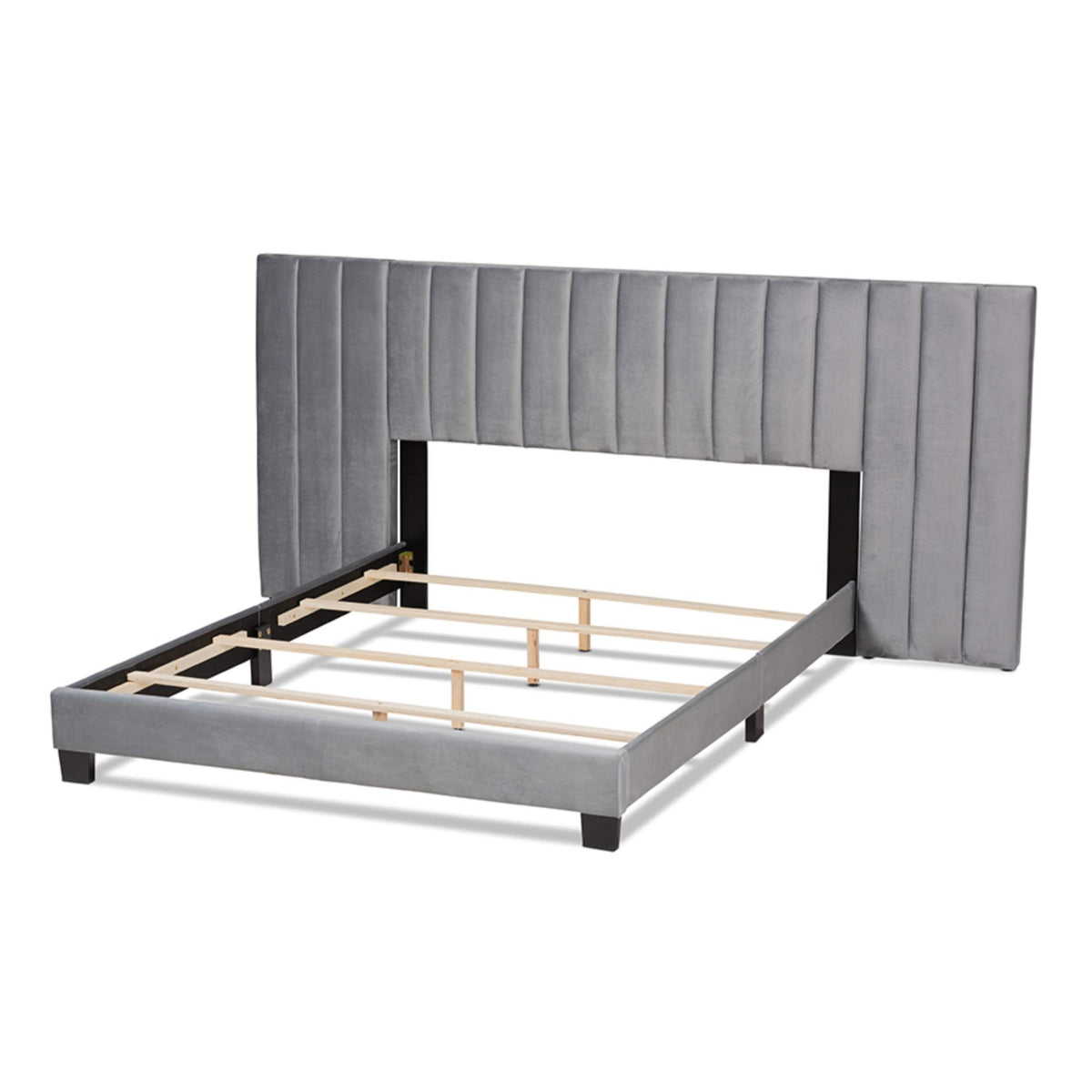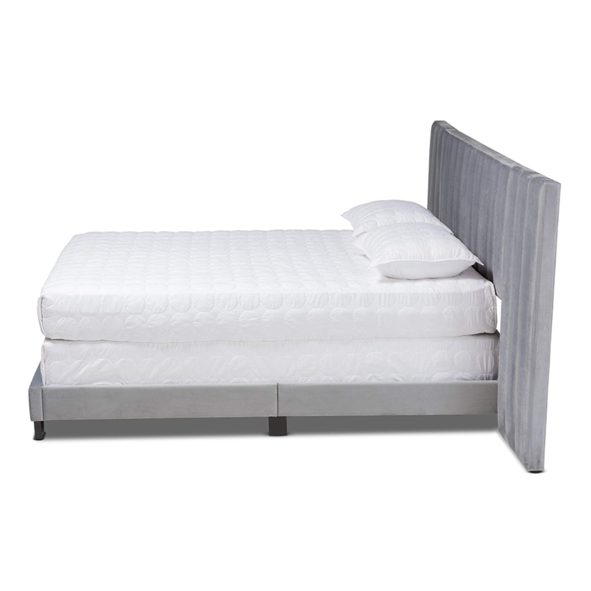 Baxton Studio Fiorenza Glam and Luxe Grey Velvet Fabric Upholstered Queen Size Panel Bed with Extra Wide Channel Tufted Headboard