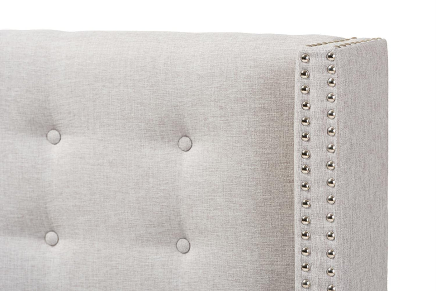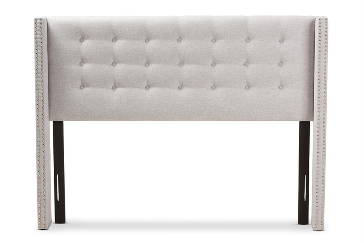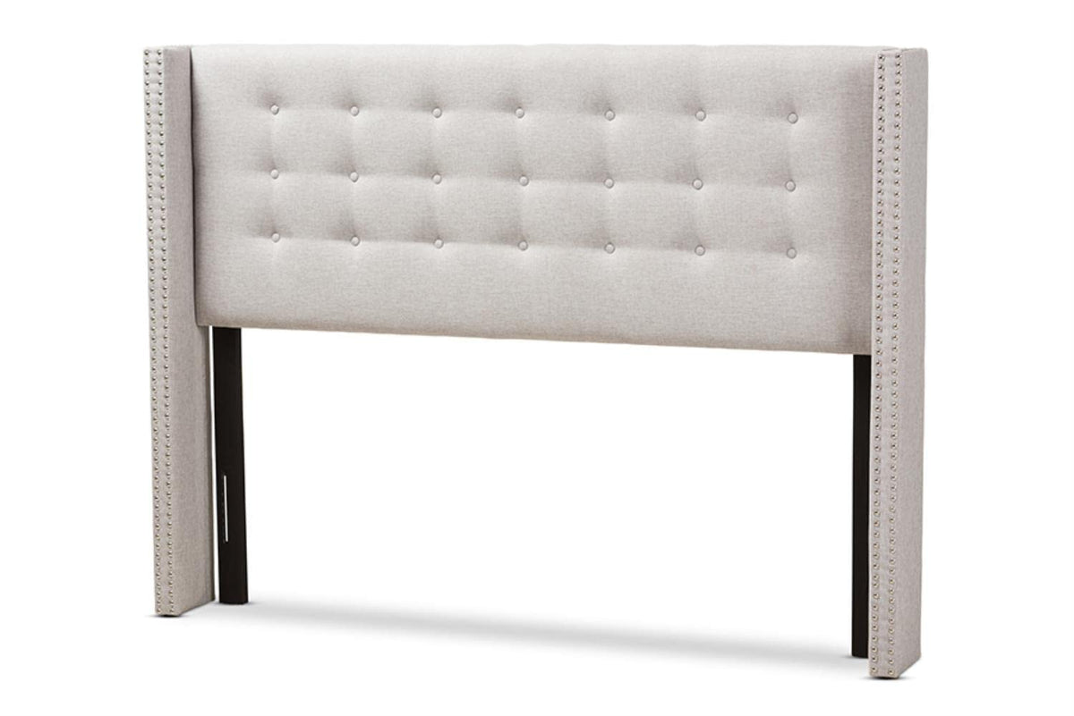 Baxton Studio Ginaro Modern And Contemporary Greyish Beige Fabric Button-Tufted Nail Head Queen Size Winged Headboard/Contemporary/Fabric Polyester 100%"/Lvl/Mdf/Foam/Greyish Beige