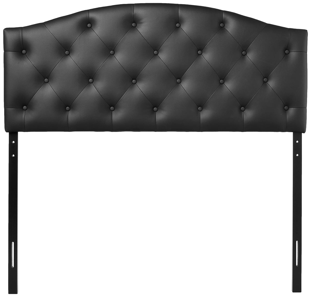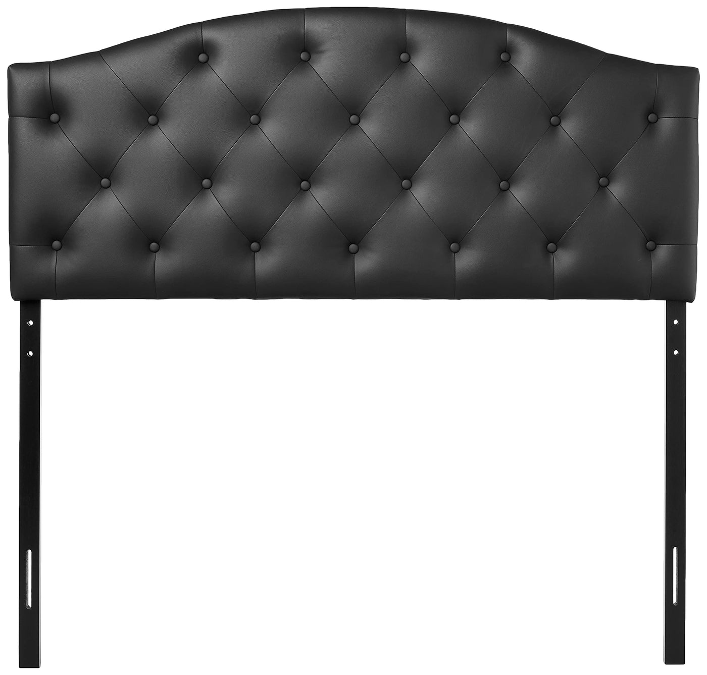 Baxton Studio Myra Modern and Contemporary Full Size Black Faux Leather Upholstered Button-Tufted Scalloped Headboard