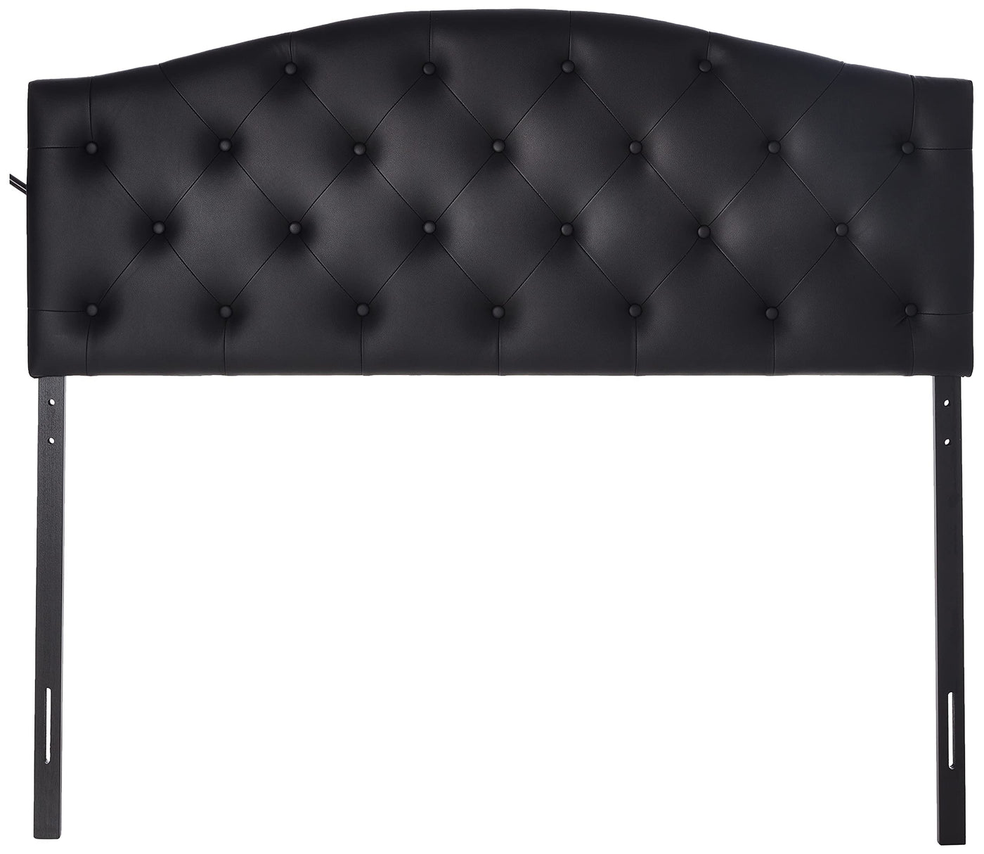 Baxton Studio Myra Modern and Contemporary Queen Size Black Faux Leather Upholstered Button-Tufted Scalloped Headboard