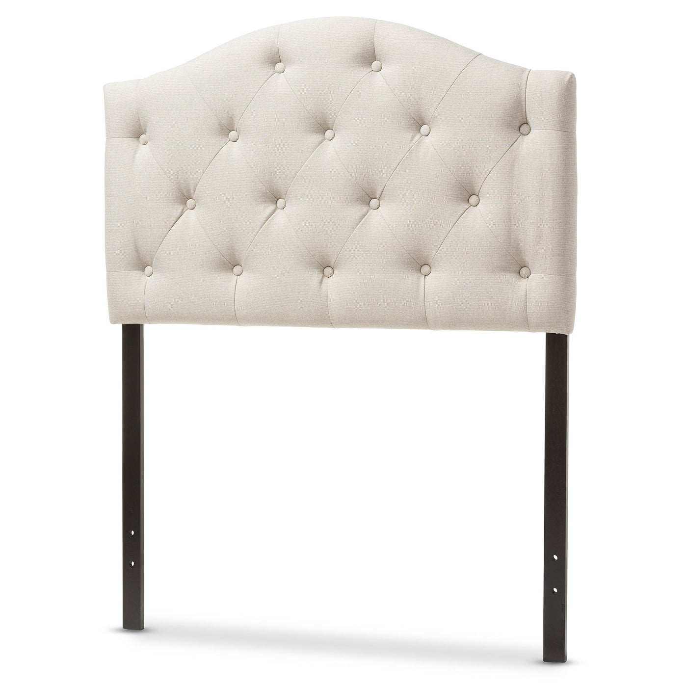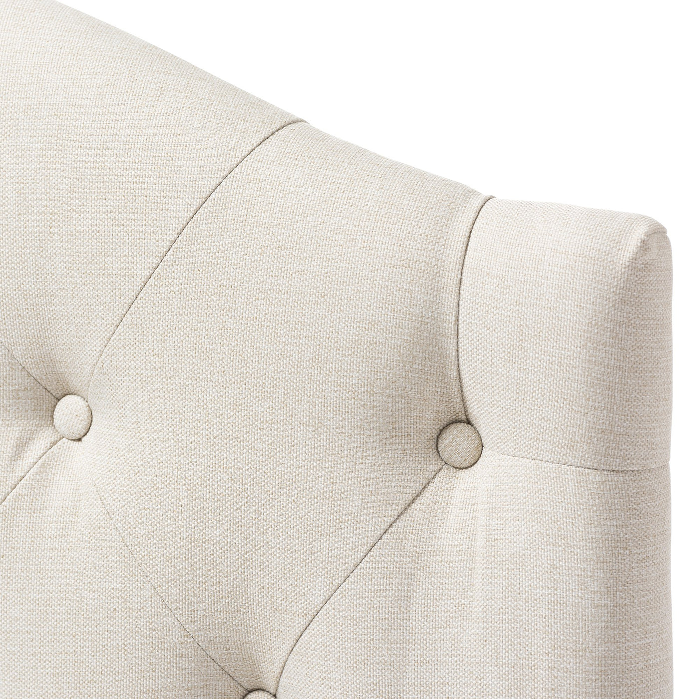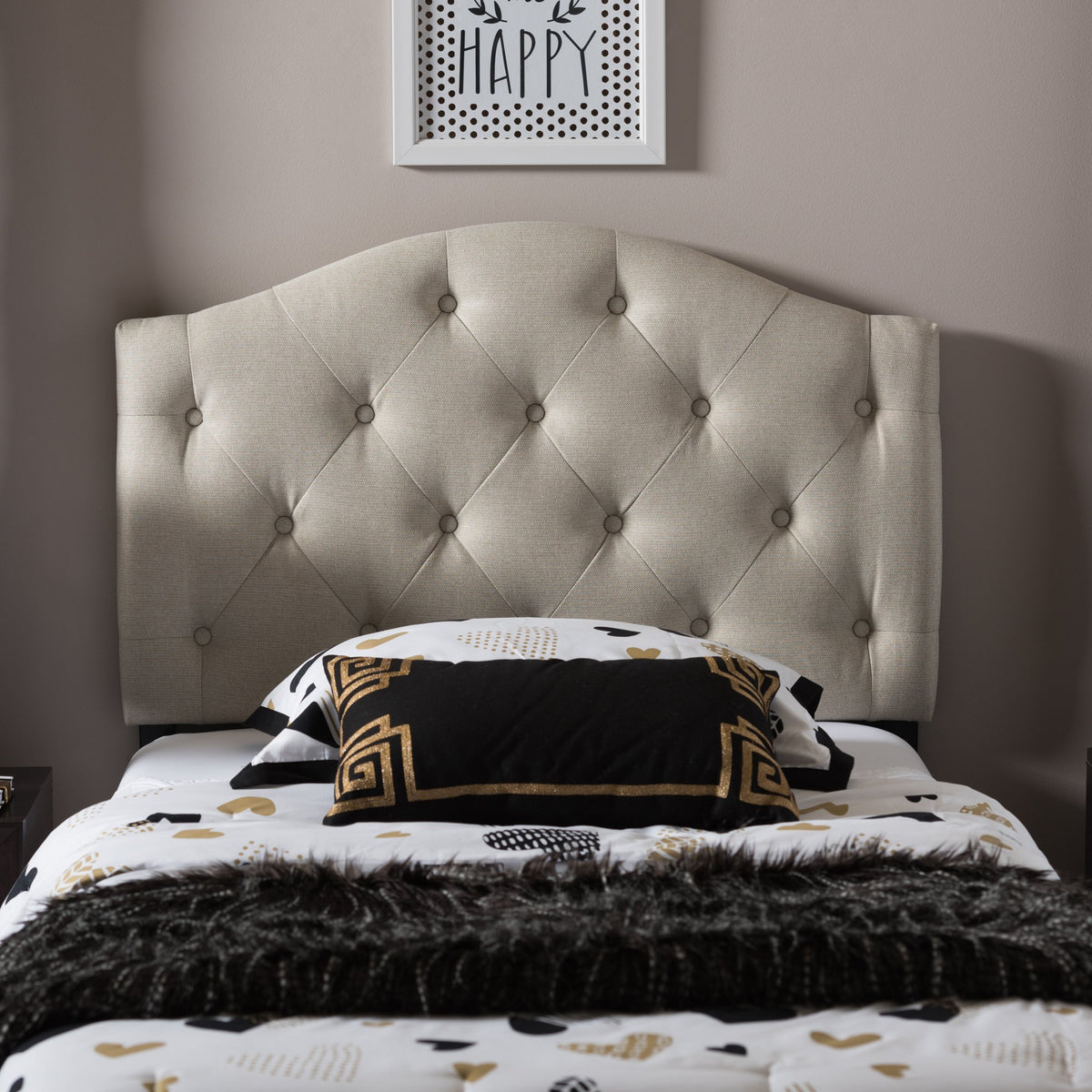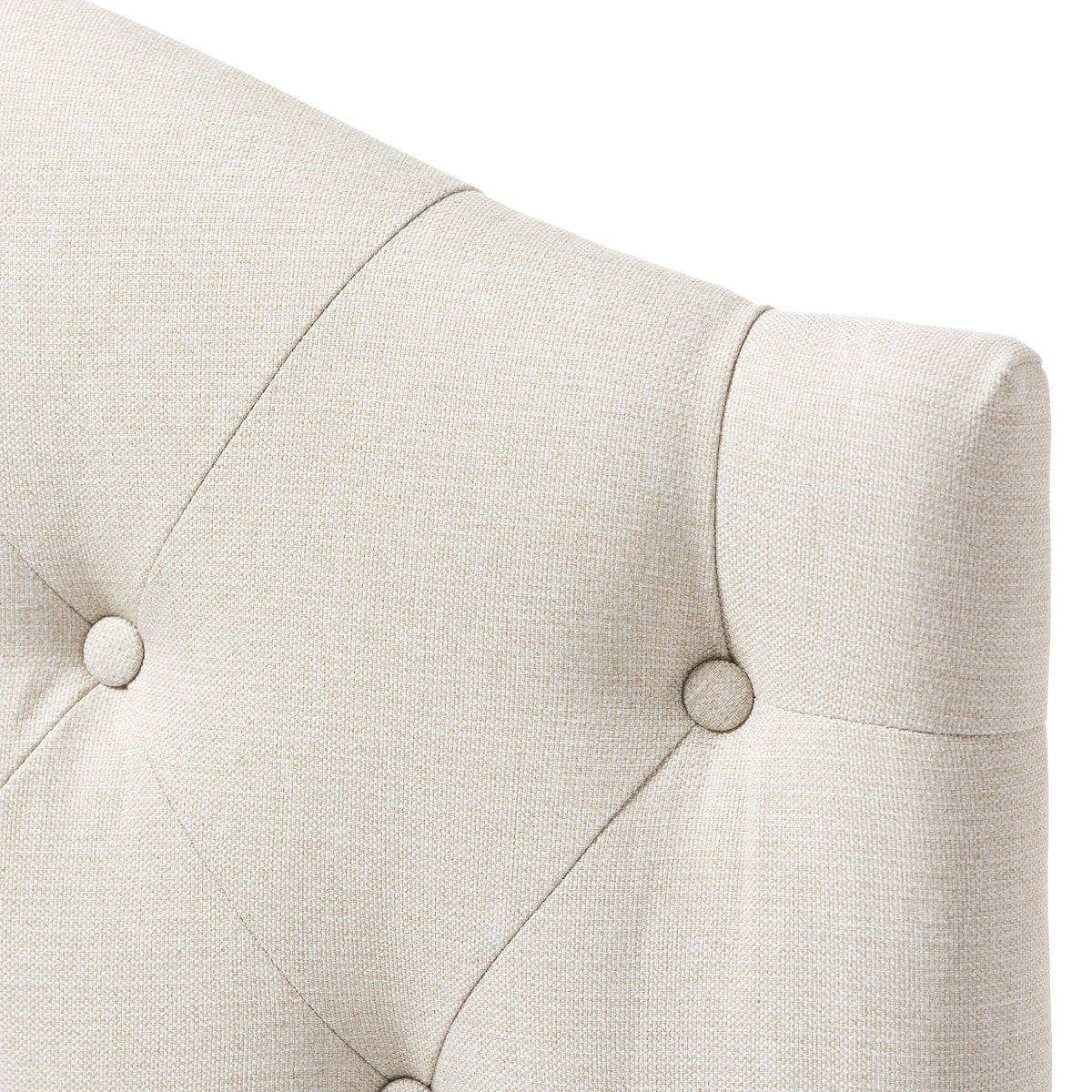 Baxton Studio Myra Modern and Contemporary Queen Size Light Beige Fabric Upholstered Button-Tufted Scalloped Headboard