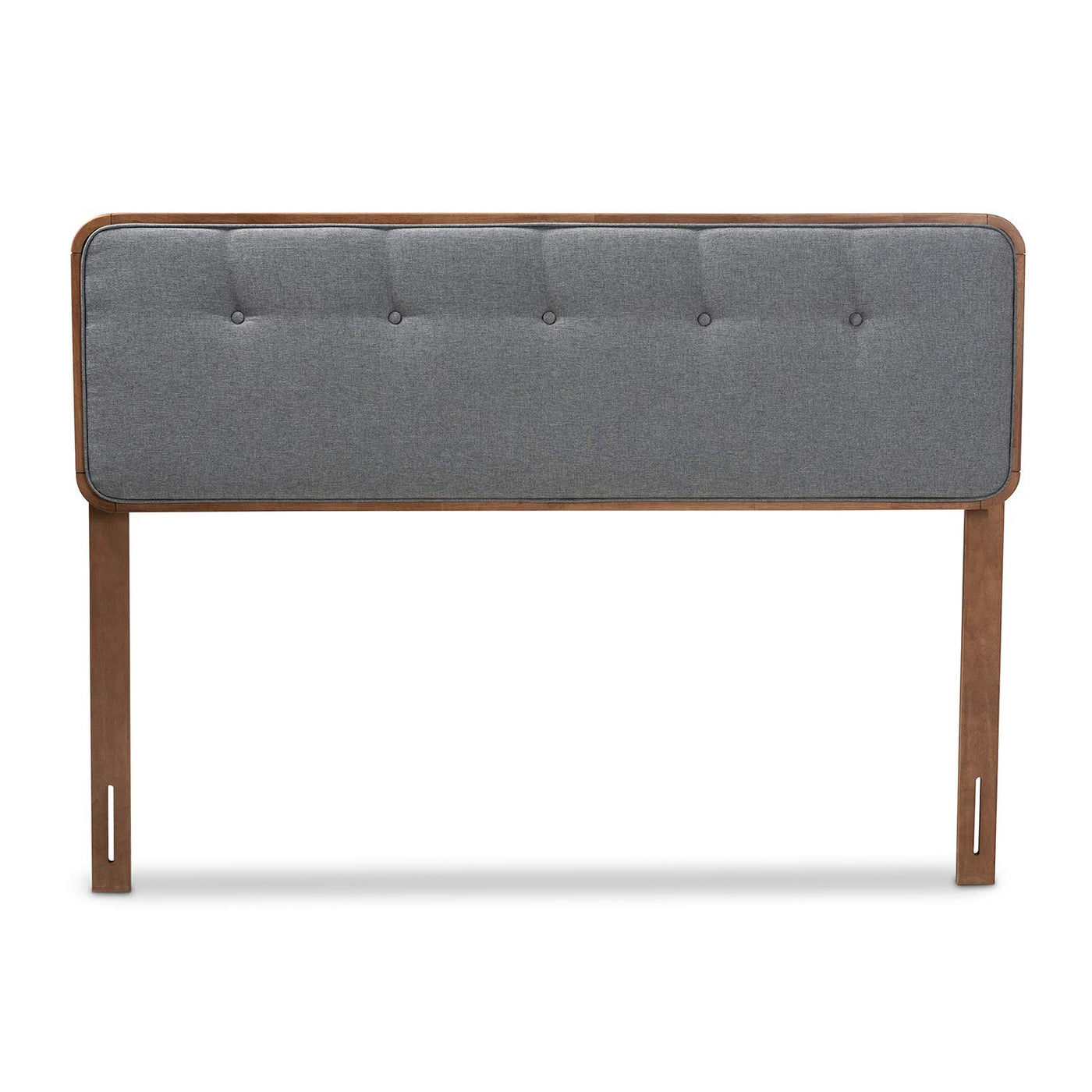 Baxton Studio Palina Mid-Century Modern Dark Grey Fabric Upholstered Walnut Brown Finished Wood King Size Headboard