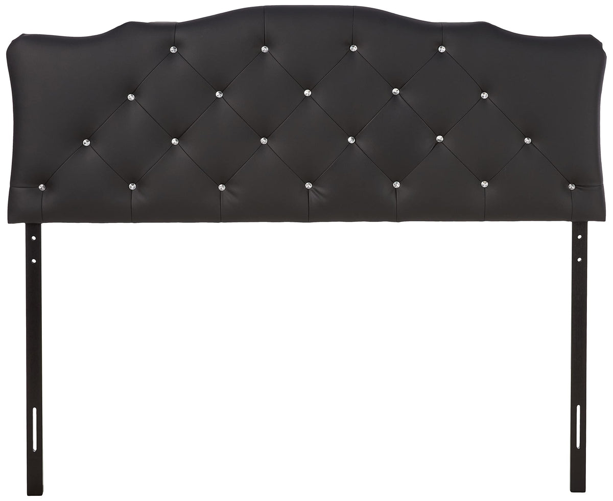 Baxton Studio Rita Modern and Contemporary Queen Size Black Faux Leather Upholstered Button-Tufted Scalloped Headboard