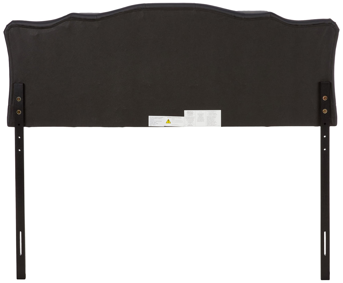 Make a statement with the decorative look and quality finishes of the Rita Upholstered Headboard. Impart a unique elegance into your bedroom interior with this classic piece of design, its scalloped top adding a hint of whimsical charm. The Rita is constructed of quality hardwood frame and is cushioned with high density foam for softness and shape. For an ultra elegant look, the black faux leather headboard is button tufted with faux crystal buttons. The headboard sits between the wall and the ensemble frame, attaching not to the bed base but to the legs, for stability. The leg supports are invisible once set up and can be adjusted to suit the height of your ensemble for convenience. Made in Malaysia, the headboard requires assembly.