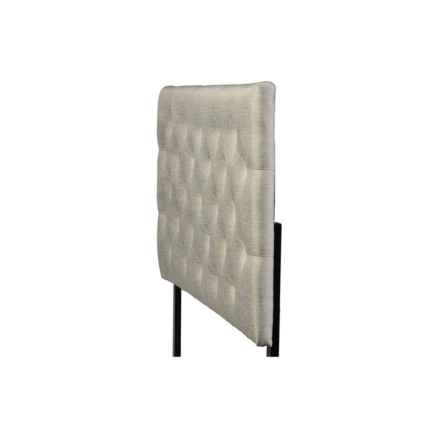 Straight lines and button-back detailing offers your sleep space a plush symmetry with the Viviana Upholstered Headboard. Impart a unique elegance into your bedroom interior with this classic piece of furniture. The Viviana is constructed of quality hardwood frame and is cushioned with high density foam for softness and shape. For an ultra elegant look, the grey polyester fabric upholstered headboard is button tufted to create the diamond shaped design. The headboard sits between the wall and the ensemble frame, attaching not to the bed base but to the legs, for stability. The leg supports are invisible once set up and can be adjusted to suit the height of your ensemble for convenience. Made in Malaysia, the headboard requires assembly.