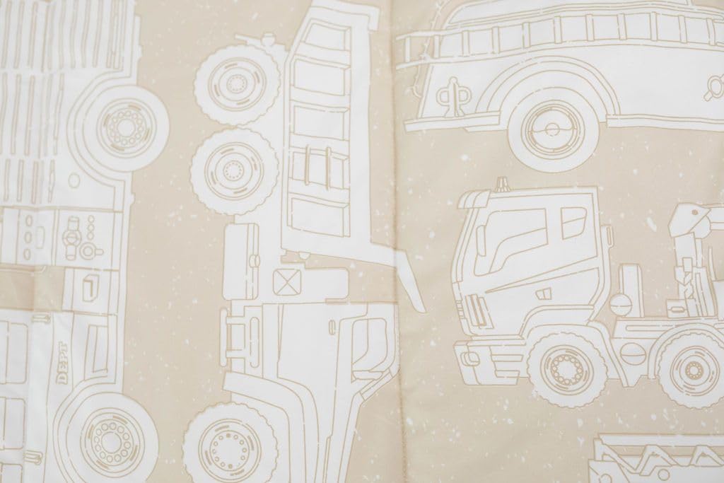 Beep Beep Beep. Back It Up - Trucks Cover The New Mack Zipper Bedding In A Light, Tan Neutral That Is Playful, Yet Easy To Style. The Interior Sheet Features A Matching Tan With White Stars.