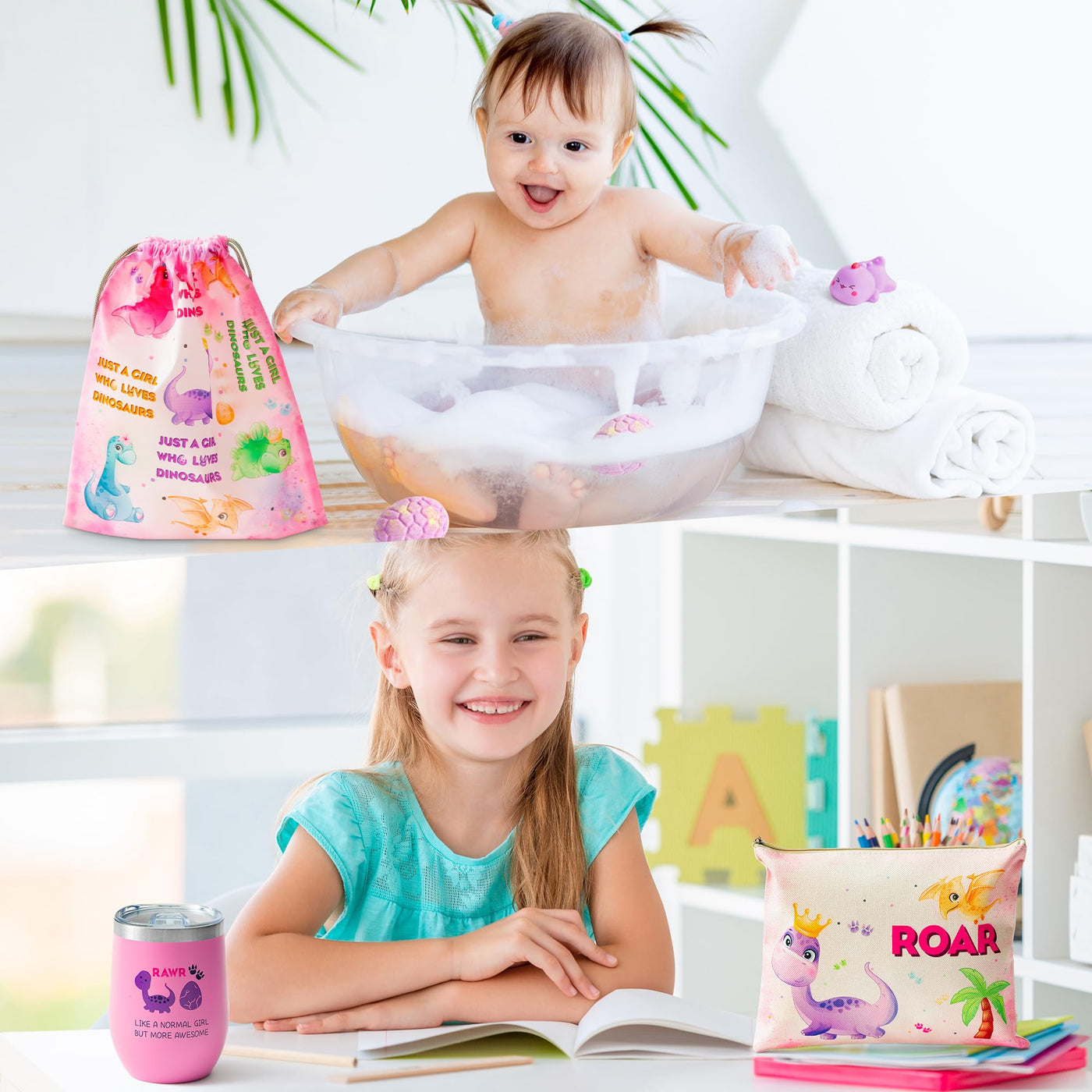 Beyumi Pink Dinosaur Gift For Girls Age 6-8 Birthday Gift Box For 3 4 5 6 7 8 9 10 11 12 Years Old Toddler Girls Basket With Bla
