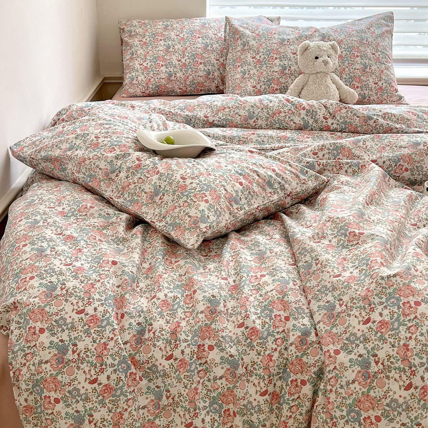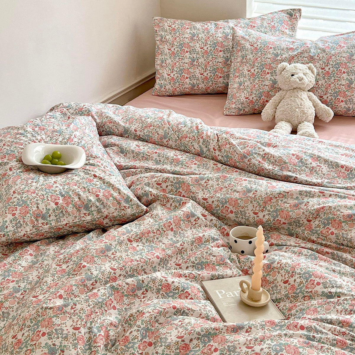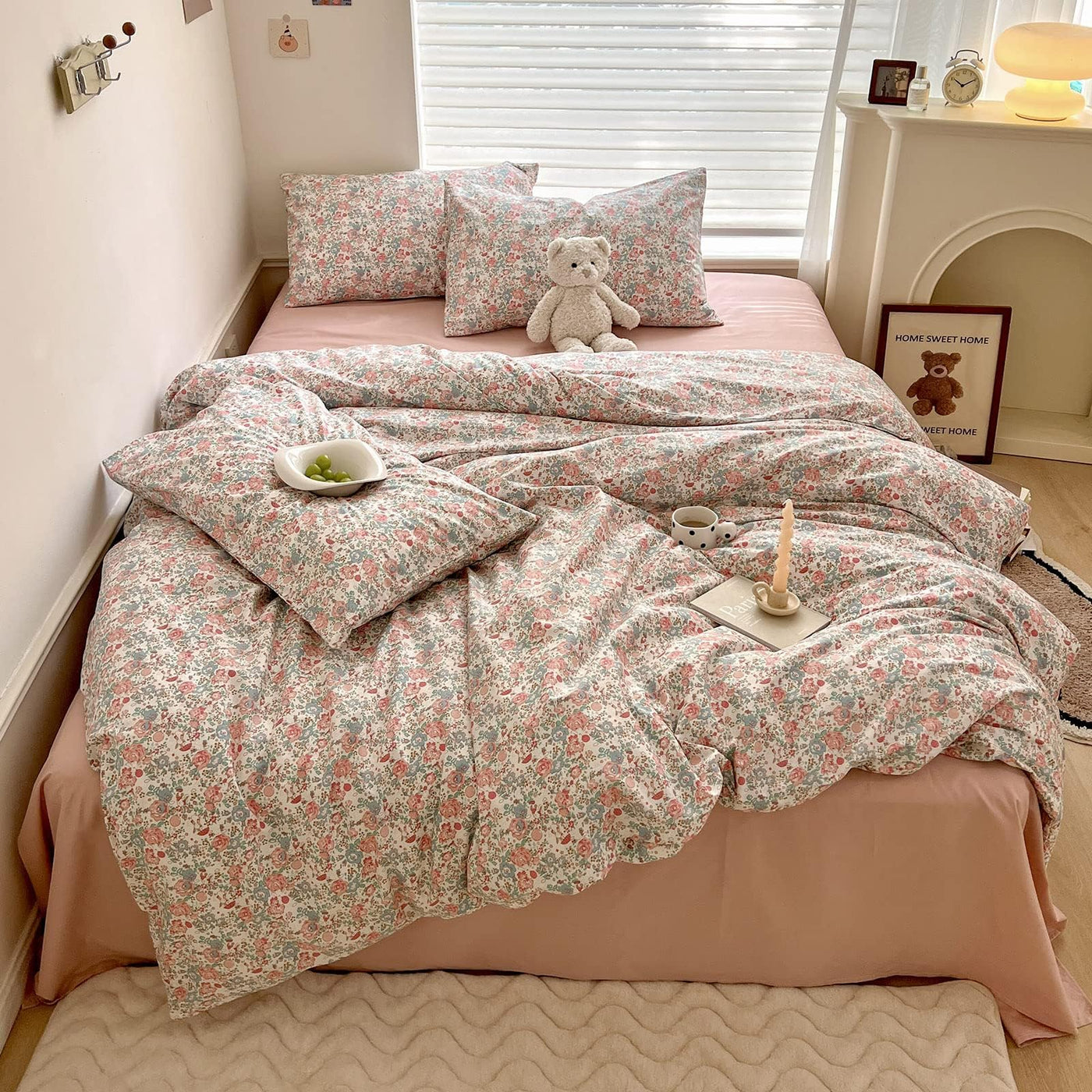 Boho Floral Duvet Cover Twin Soft Cotton Aesthetic Floral Bedding Sets French Style Pink Blue Flower Branches Duvet Cover Chic S