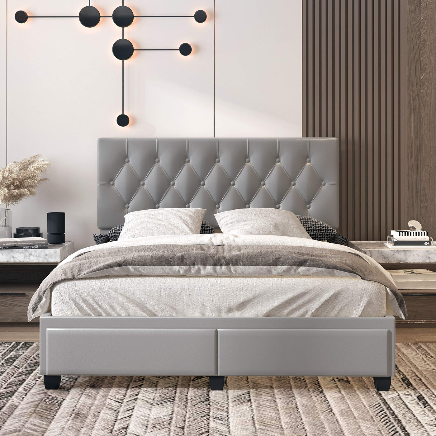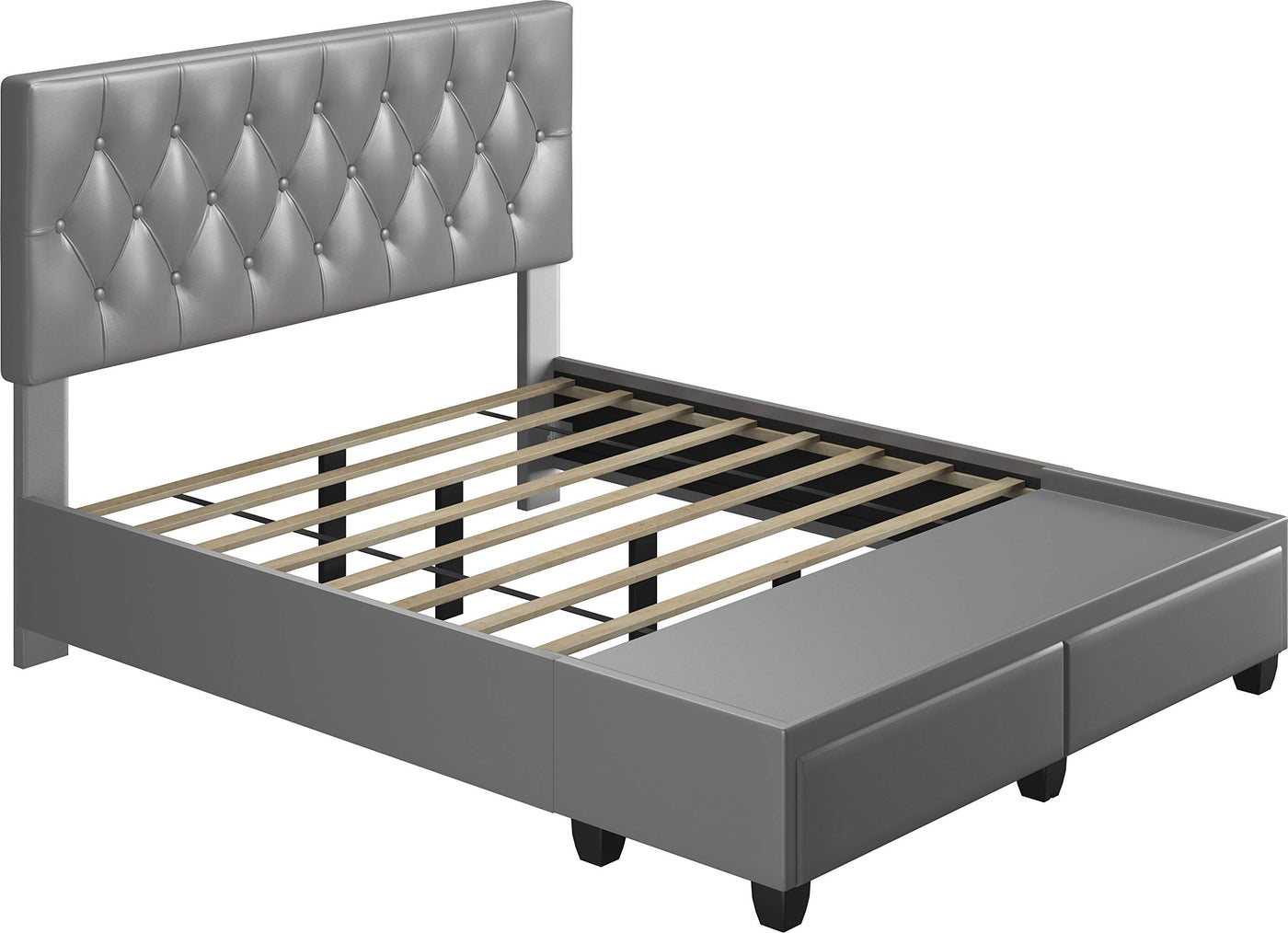 Boyd Sleep Verona Upholstered Platform Bed Frame Mattress Foundation With Headboard, Dual Front Storage Drawers, And Strong Wood Slat Supports: Button Tufted Faux Leather, Grey, Queen