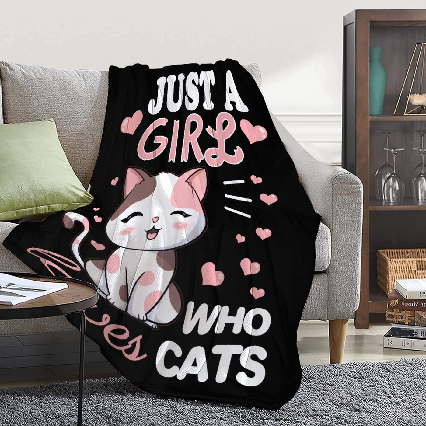 Cat Blanket Plush Gift For Kids Women Comfy Throw-Just A Girl Who Loves Cats-Soft Lightweight Kawaii Kitten Quilt Cozy Sheet Cut