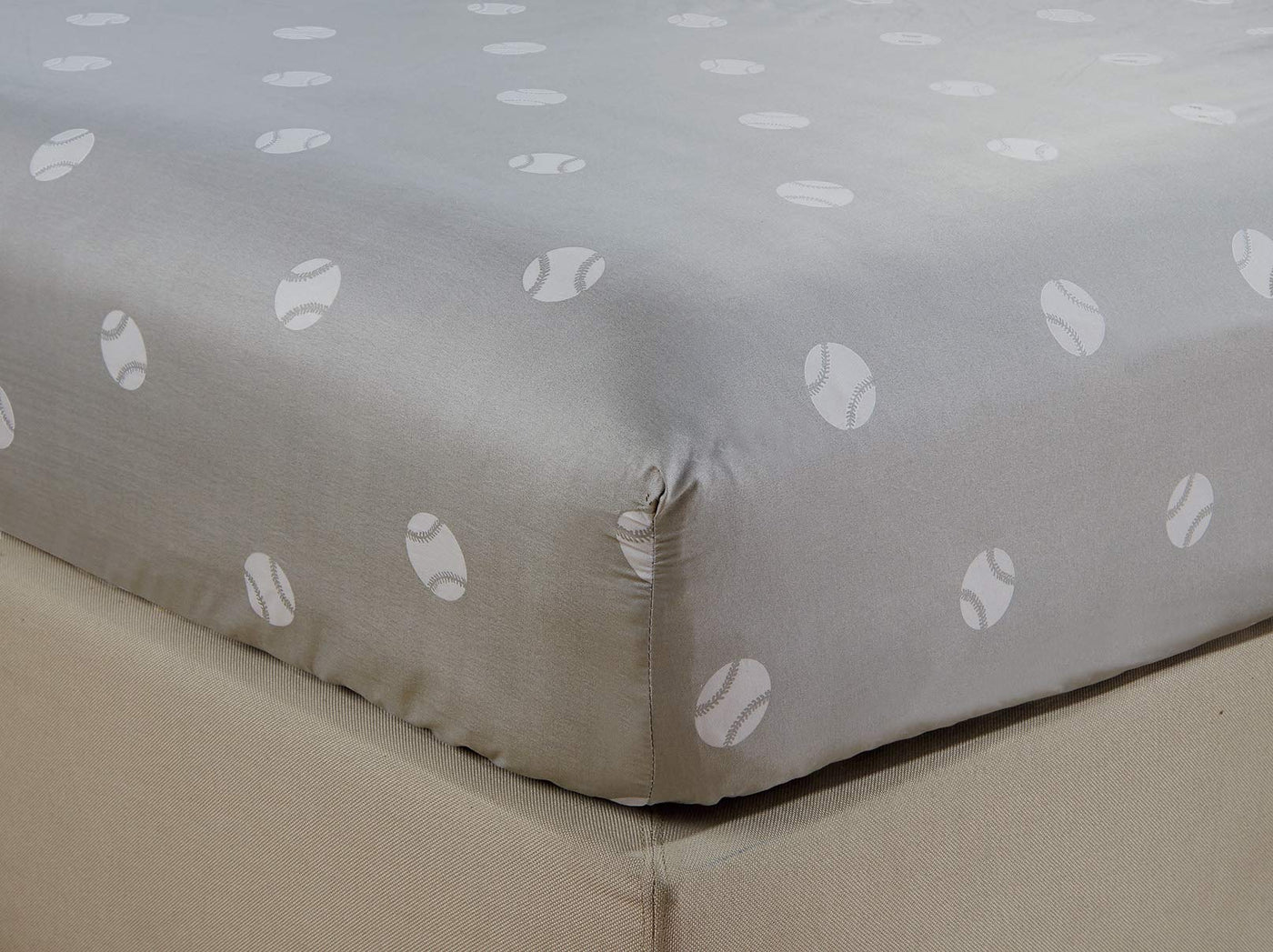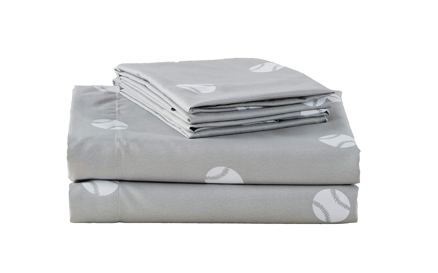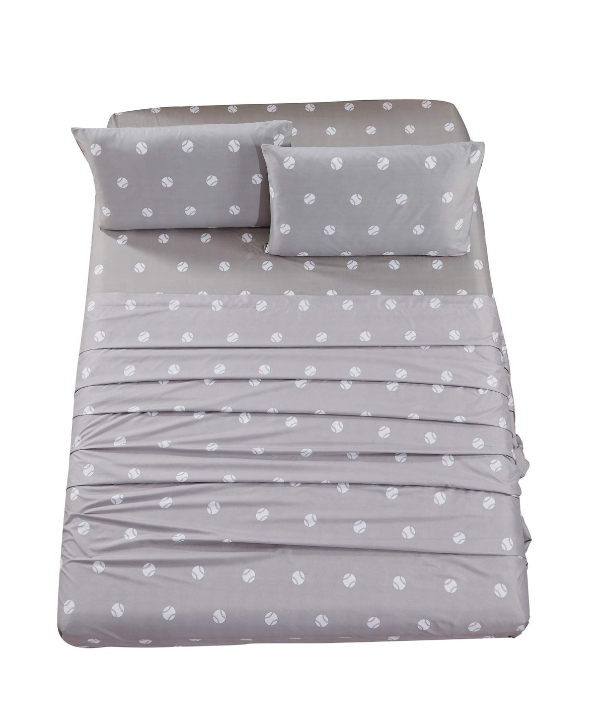 Chezmoi Collection 4-Piece Kids/Teens Sports Sheet Set - Soft Microfiber Gray White Baseball, Queen Size