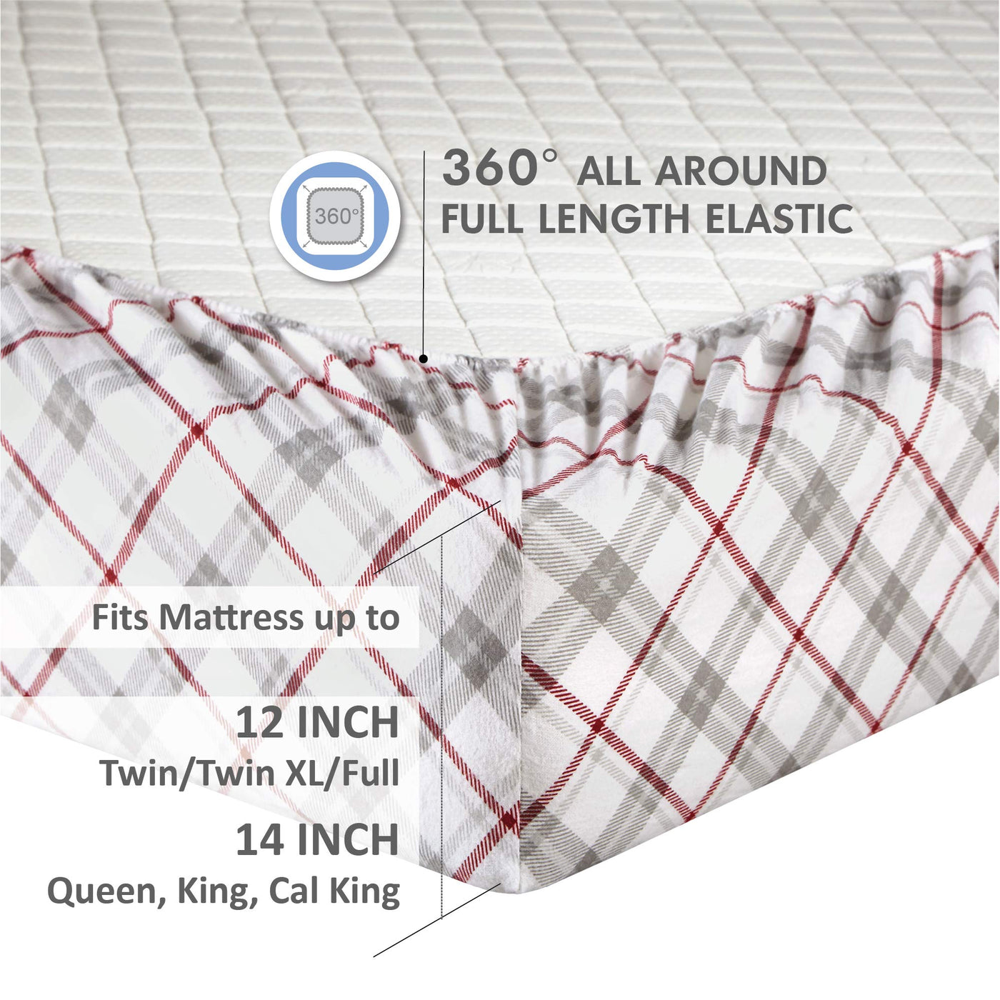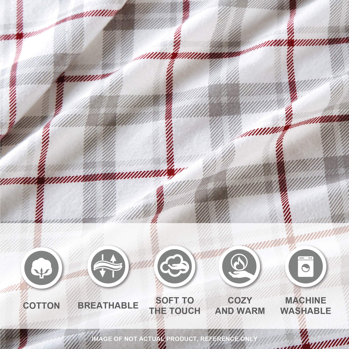 Comfort Spaces Cotton Flannel Breathable Warm Deep Pocket Sheets With Pillow Case Bedding, King, Grey/Red Plaid 4 Piece