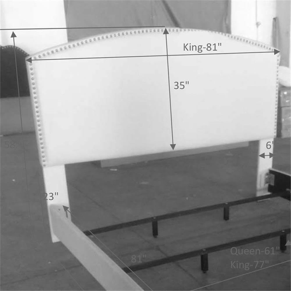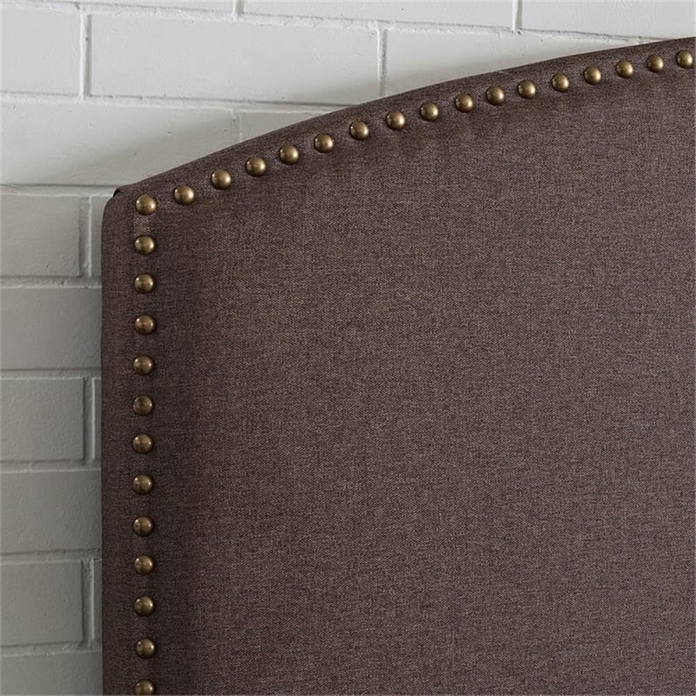 Keep your bedroom style classic with the Cassie Bed Set. The curved headboard is available in bourbon, creme, shadow gray, and navy linen that is trimmed with antique brass or nickel nail head. Easy to assemble, with a sturdy frame. Available in Full/Queen or King/California King sizes.