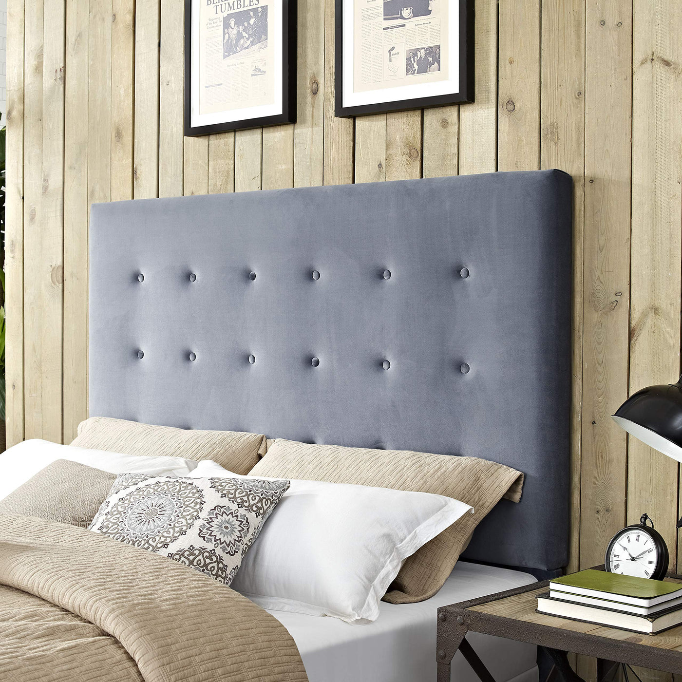 Give your bedroom streamlined sophistication with the Reston Headboard from Crosley Furniture. The tufted headboard is upholstered in cornflower or shale colored microfiber or cre´me colored linen. Easy to assemble, with a sturdy frame. Available in Full/Queen or King/California King sizes.