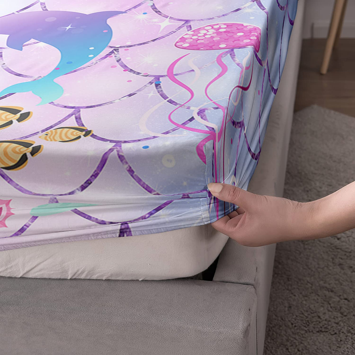 Q: How do I care for the Mermaid Bed Sheets?A: These bed sheets are machine washable and can be tumble dried on low heat. It's recommended not to use bleach to maintain the vibrant colors and quality of the fabric.