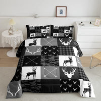 Deer Antler Silhouette Kids Comforter Set Full Size,Geometric Plaids Arrows Boho Bedding Set,Wild Animals Hunting Rustic Adventu