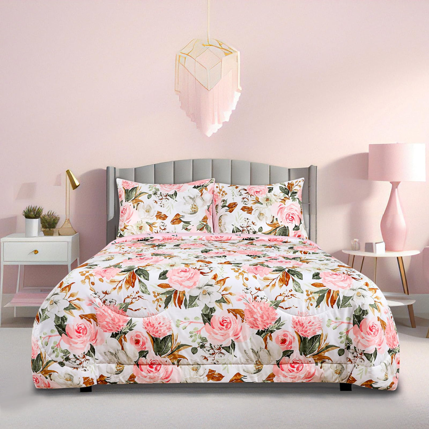 Dilimi Pink Comforter Full Size For Girls, Lightweight Reversible Floral Full Size Comforter Sets, All Season 5 Pieces Full Size Bed Comforter Sets With Sheet, Comforter, Flat Sheet, 2 Pillowcase
