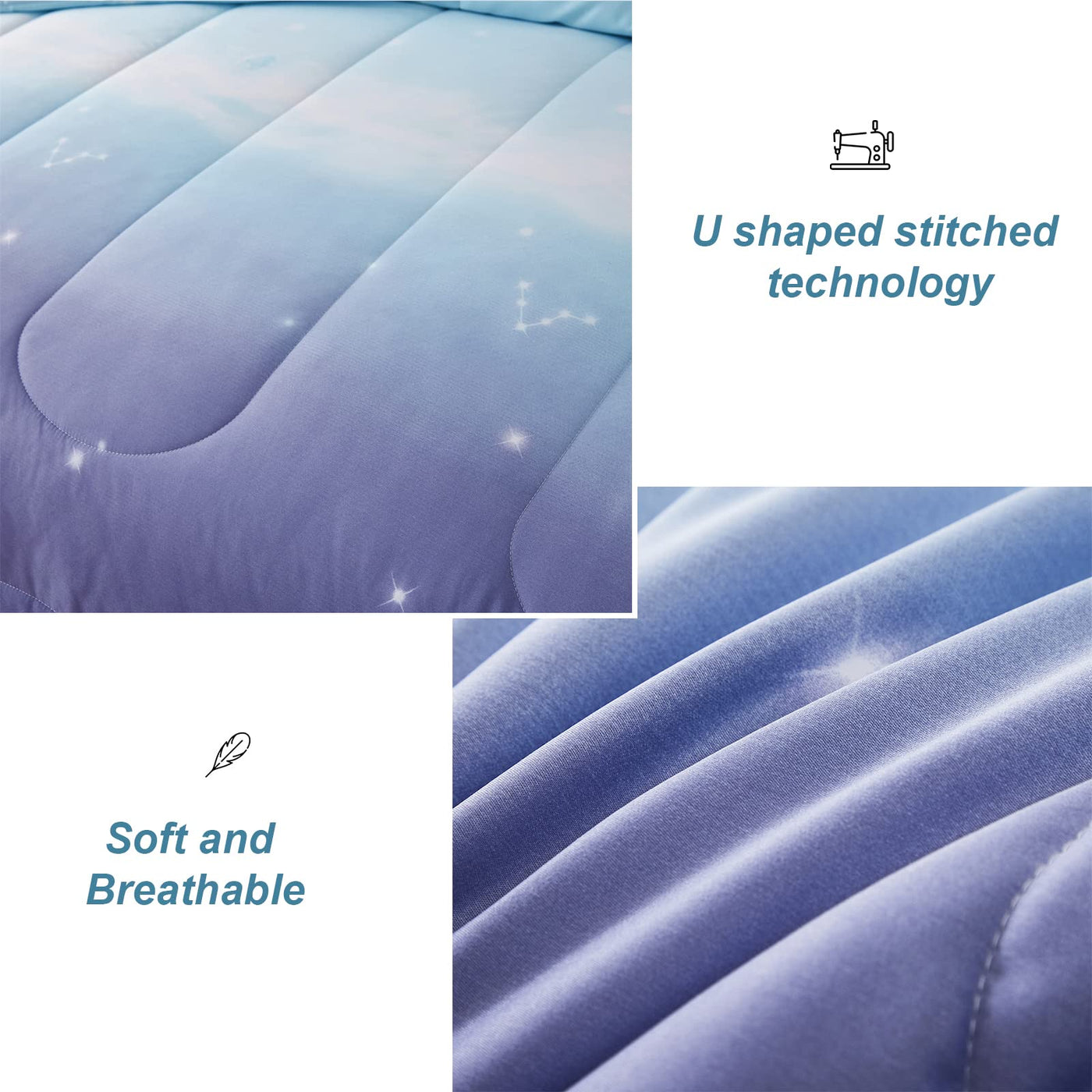 Q: Is this comforter set suitable as a gift for teens or women?A: Yes, the ombre blue purple comforter set is an ideal gift for birthdays or holidays for girls, teens, or women, thanks to its stylish design and cozy feel.