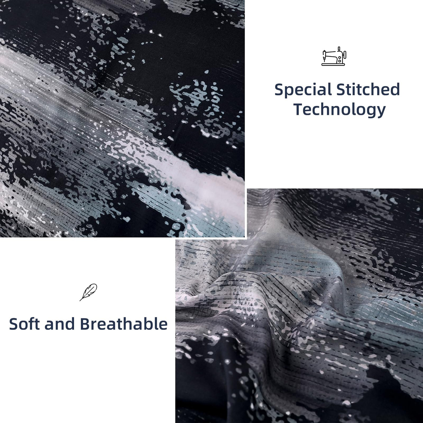 Q: What material is the Dinjoy Ombre Blue Comforter Set made from?A: The comforter set is made from premium microfiber polyester fabric, offering a super soft feel. It is designed for all-season use, providing warmth and breathability for a peaceful sleep.