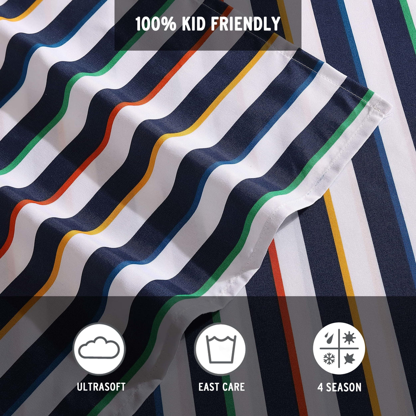 Eddie Bauer Kids - Full Sheets, Stain Resistant Kids Bedding, Ideal For Toddler Bedding Set (Stripes Game Blue, Full)