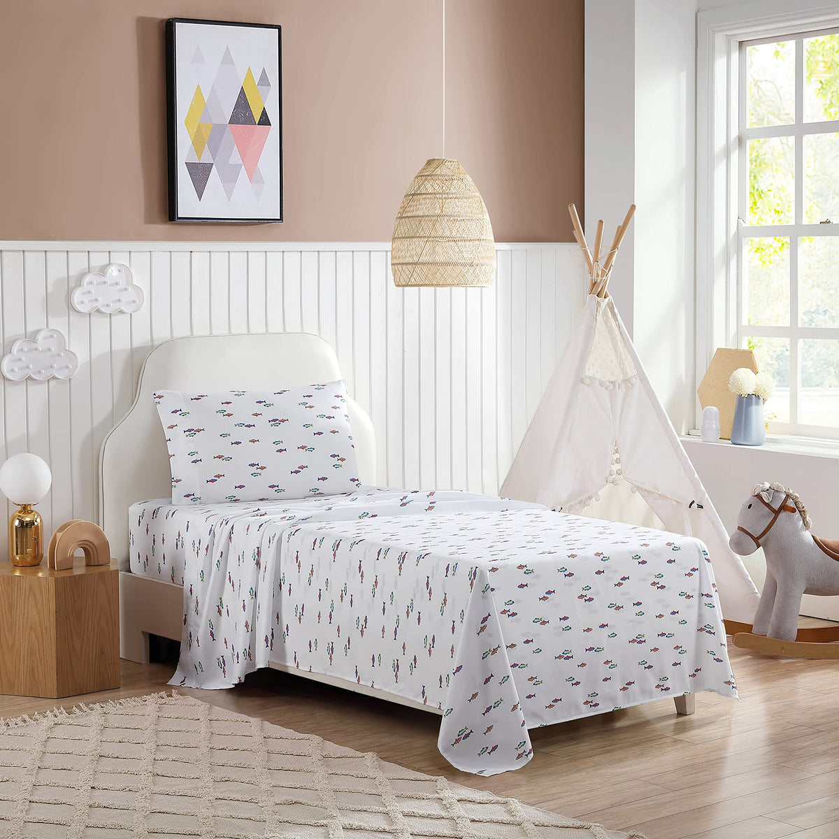 Eddie Bauer Kids - Twin Sheets, Stain Resistant Kids Bedding, Ideal For Toddler Bedding Set (Fish Lake White, Twin)