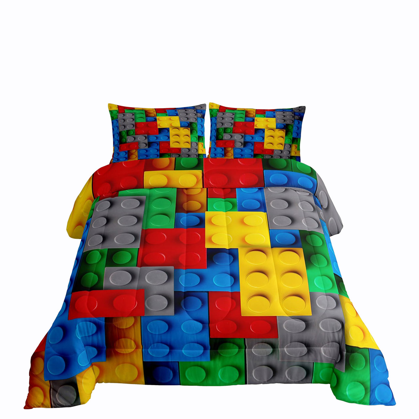 Erosebridal Construction Comforter Set Colorful Bedding Set 3D Building Blocks Quilt King,Kids Boys Bricks Duvet Insert Watercol