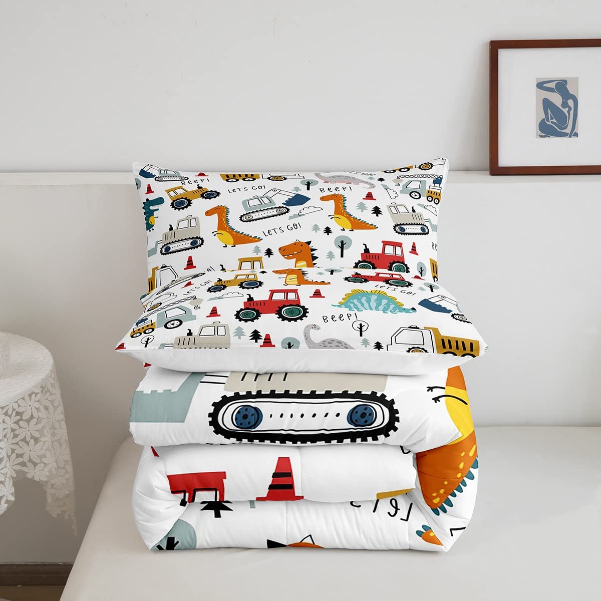 Feelyou Construction Comforter Set Kids Cartoon Dinosaur Comforter Cover Set For Boys Equipment Trucks Bedding Set Construction