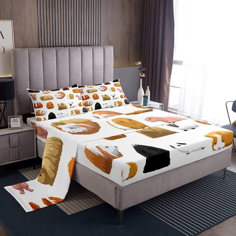 Feelyou Kids Sheet Set King Size Guinea Pig Bedding Set Cute Pet Pattern Sheets Set For Boys Girls Kawaii Pet Animal Theme Bed S
