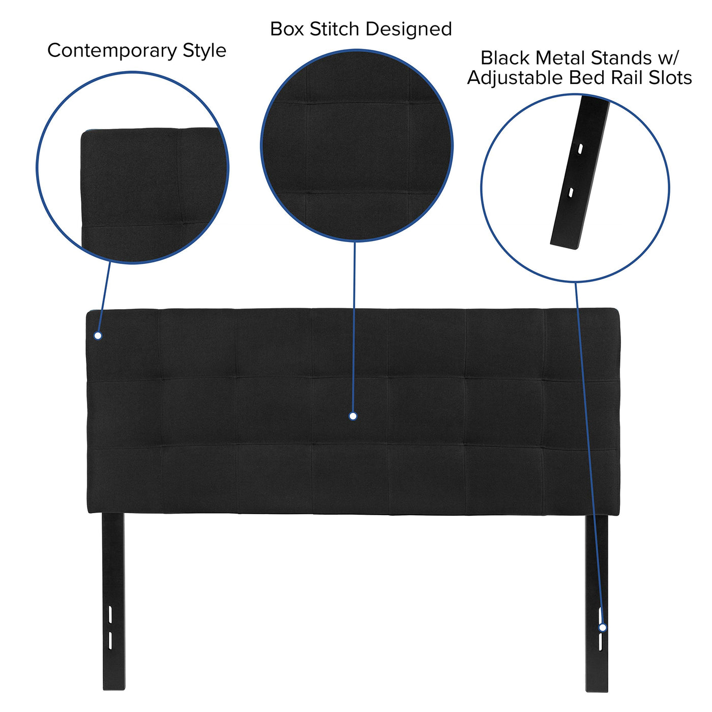 Enhance Any Bed With The Upscale Look And Added Comfort Of The Flash Furniture Bedford Tufted Upholstered Full Size Headboard. This Tufted Headboard Boasts An Elegant Design Featuring A Soft Black Fabric Upholstery With Button Tufting And A Diamond Stitch Pattern To Add Contemporary Style To Any Master Bedroom Or Guest Bedroom In Your Home. It Fits Universal Platform And Standard Size Bedframes And Features Sturdy Black Metal Stands With Adjustable Bed Rail Slots So You Can Adjust The Headboard To The Perfect Height. Additionally, The Lack Of A Footboard Attached To The Headboard Allows You To Easily Tidy The Bed And Change Your Sheets Without Any Obstacles. Constructed With A Durable Metal Frame And High-Quality Fabric, This Upholstered Headboard Withstands Years Of Quality Use And Provides The Sturdiness And Support You Can Count On. This Full Size Headboard Measures 56.75"W X 2.5"D X 41.75-54.25"H For The Perfect Fit For Full Size Beds. With Pre-Drilled Legs And All Hardware Included, Assembly Is A Breeze.