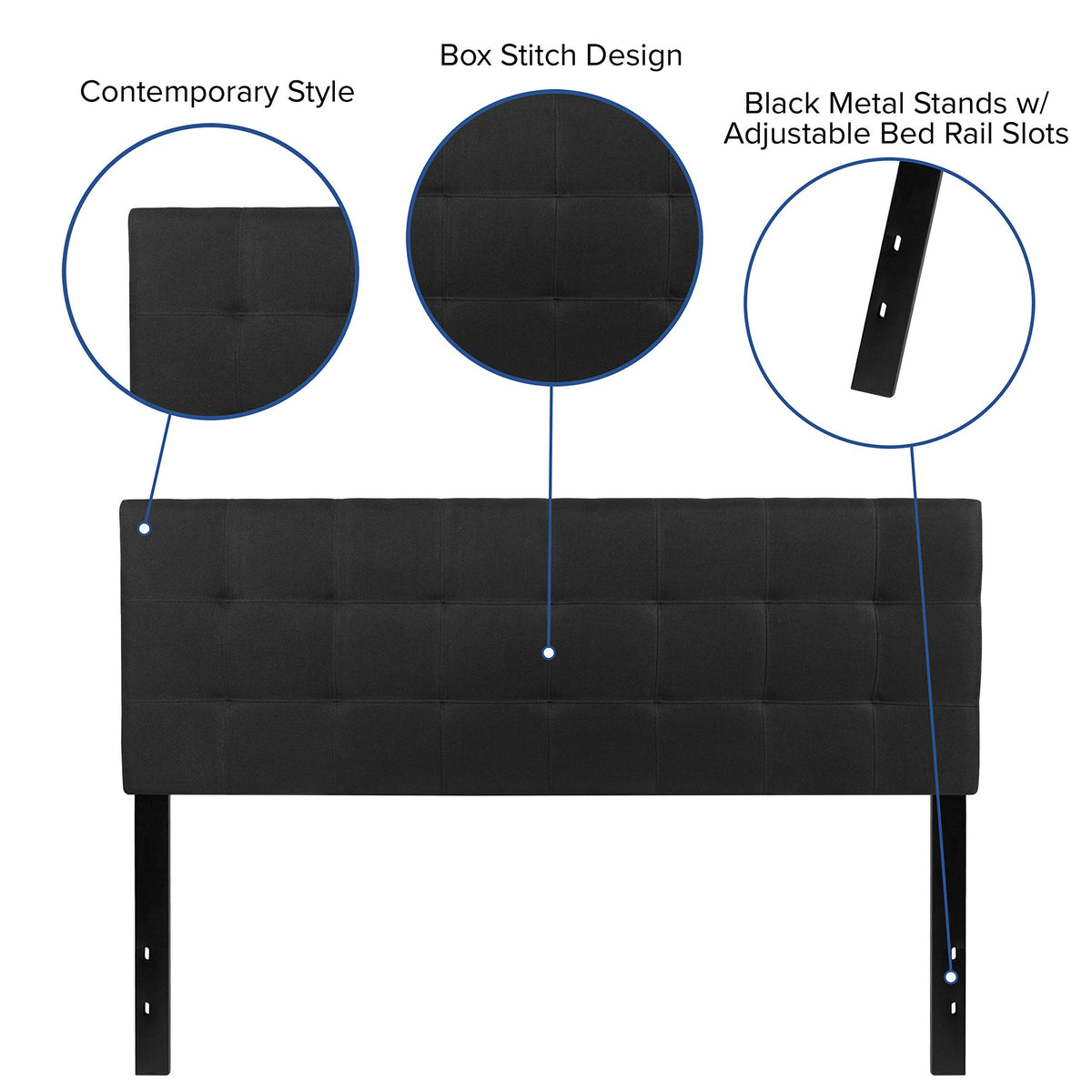 Enhance Any Bed With The Upscale Look And Added Comfort Of The Flash Furniture Bedford Tufted Upholstered Queen Size Headboard. This Tufted Headboard Boasts An Elegant Design Featuring A Soft Black Fabric Upholstery With Button Tufting And A Diamond Stitch Pattern To Add Contemporary Style To Any Master Bedroom Or Guest Bedroom In Your Home. It Fits Universal Platform And Standard Size Bedframes And Features Sturdy Black Metal Stands With Adjustable Bed Rail Slots So You Can Adjust The Headboard To The Perfect Height. Additionally, The Lack Of A Footboard Attached To The Headboard Allows You To Easily Tidy The Bed And Change Your Sheets Without Any Obstacles. Constructed With A Durable Metal Frame And High-Quality Fabric, This Upholstered Headboard Withstands Years Of Quality Use And Provides The Sturdiness And Support You Can Count On. This Queen Size Headboard Measures 61.5"W X 2.5"D X 41.75-54.25"H For The Perfect Fit For Queen Size Beds. With Pre-Drilled Legs And All Hardware Included, Assembly Is A Breeze.