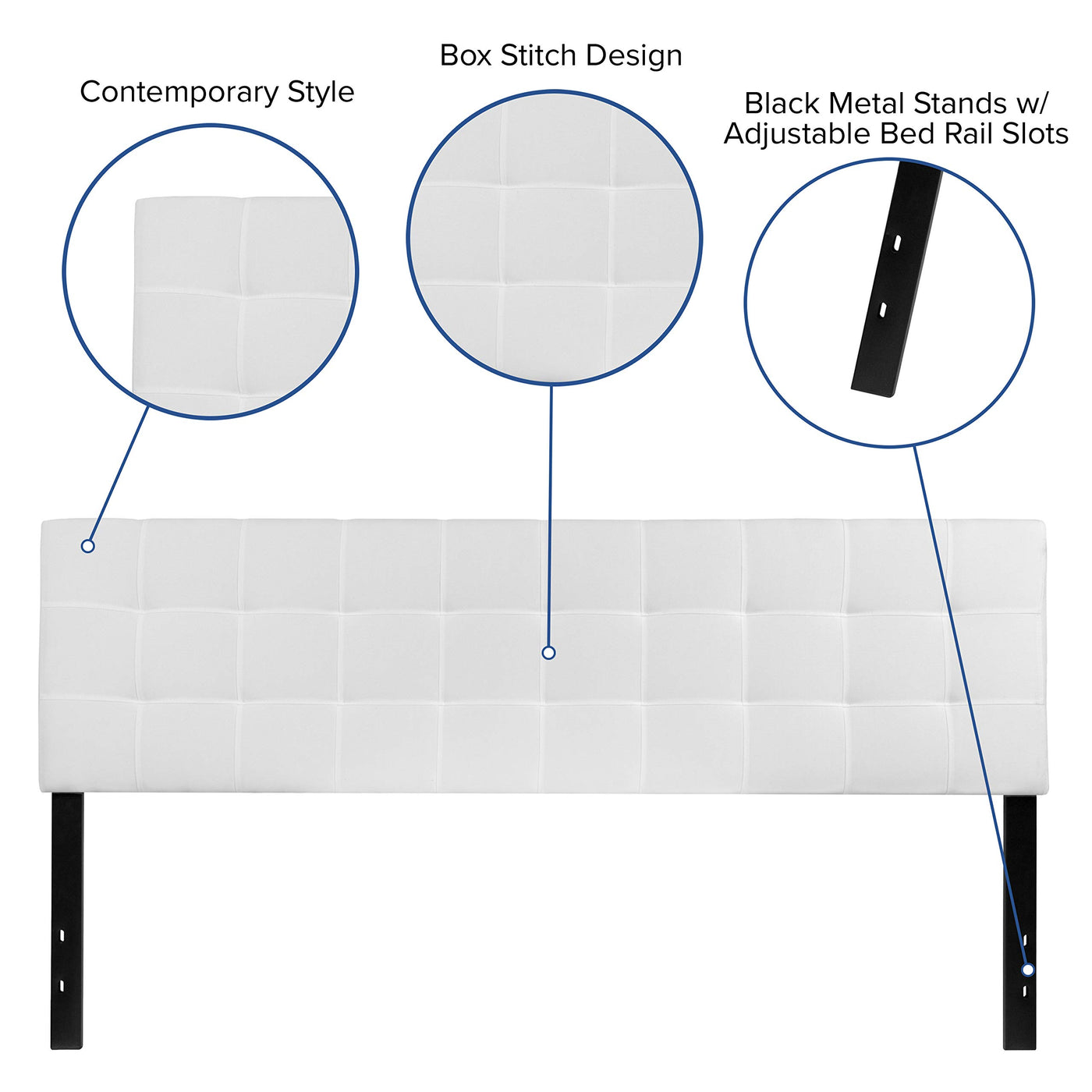 If You Like Reading Or Using Your Tablet Or Laptop In Bed, You Need A Headboard To Provide Extra Support. A Headboard Gives Your Room A Very Personal Touch And Allows You To Show Off Your Style. This Gorgeous White King Headboard Features Button Tufting And A Diamond Stitch Pattern Design, Fabric Upholstery, And Includes Adjustable Metal Bed Rail Slots. The Slim Panel Will Make Your Room Feel More Spacious. Having Just A Headboard Will Provide You With Floor Space And Makes It Easy To Make Up The Bed. Whether You'Re Updating Your Master Bedroom, Guest Room Or Furnishing Your First Apartment Or Home, This Headboard Will Give A Fresh, On-Trend Look To Your Space.