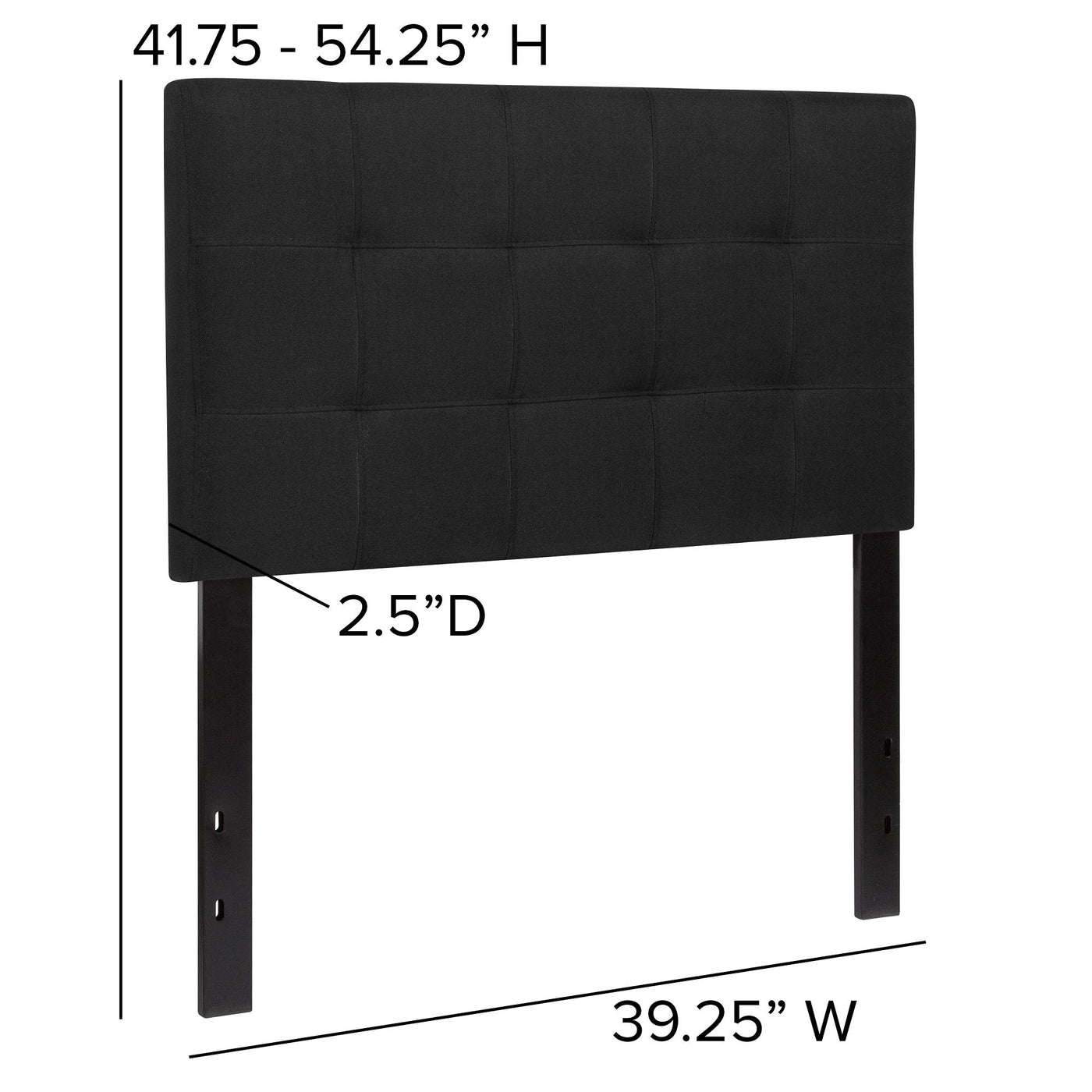 If You Like Reading Or Using Your Tablet Or Laptop In Bed, You Need A Headboard To Provide Extra Support. A Headboard Gives Your Room A Very Personal Touch And Allows You To Show Off Your Style. This Gorgeous Black Twin Headboard Features Button Tufting And A Diamond Stitch Pattern Design, Fabric Upholstery, And Includes Adjustable Metal Bed Rail Slots. The Slim Panel Will Make Your Room Feel More Spacious. Having Just A Headboard Will Provide You With Floor Space And Makes It Easy To Make Up The Bed. Whether You'Re Updating Your Master Bedroom, Guest Room Or Furnishing Your First Apartment Or Home, This Headboard Will Give A Fresh, On-Trend Look To Your Space.