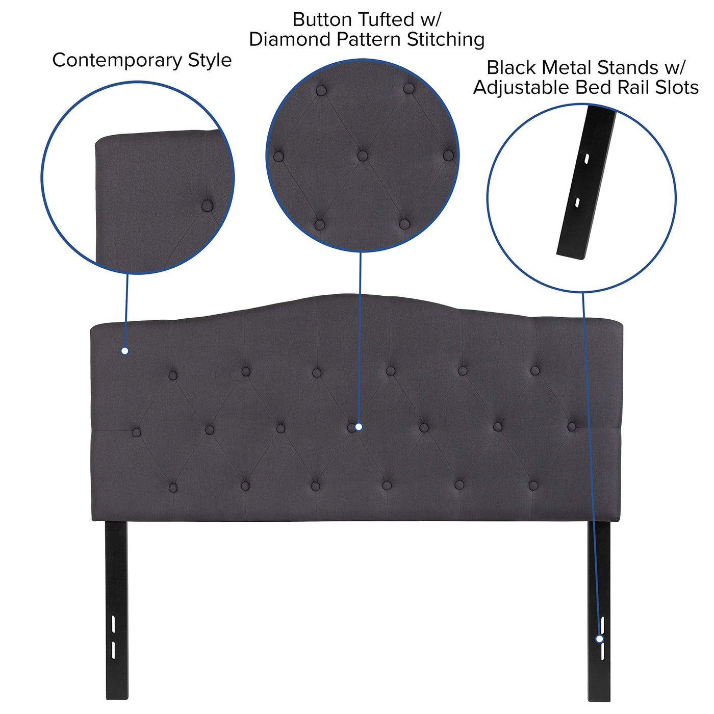 If You Like Reading Or Using Your Tablet Or Laptop In Bed, You Need A Headboard To Provide Extra Support. A Headboard Gives Your Room A Very Personal Touch And Allows You To Show Off Your Style. This Gorgeous Dark Gray Full Headboard Features Button Tufting And A Diamond Stitch Pattern Design, Fabric Upholstery, And Includes Adjustable Metal Bed Rail Slots. The Slim Panel Will Make Your Room Feel More Spacious. Having Just A Headboard Will Provide You With Floor Space And Makes It Easy To Make Up The Bed. Whether You'Re Updating Your Master Bedroom, Guest Room Or Furnishing Your First Apartment Or Home, This Headboard Will Give A Fresh, On-Trend Look To Your Space.