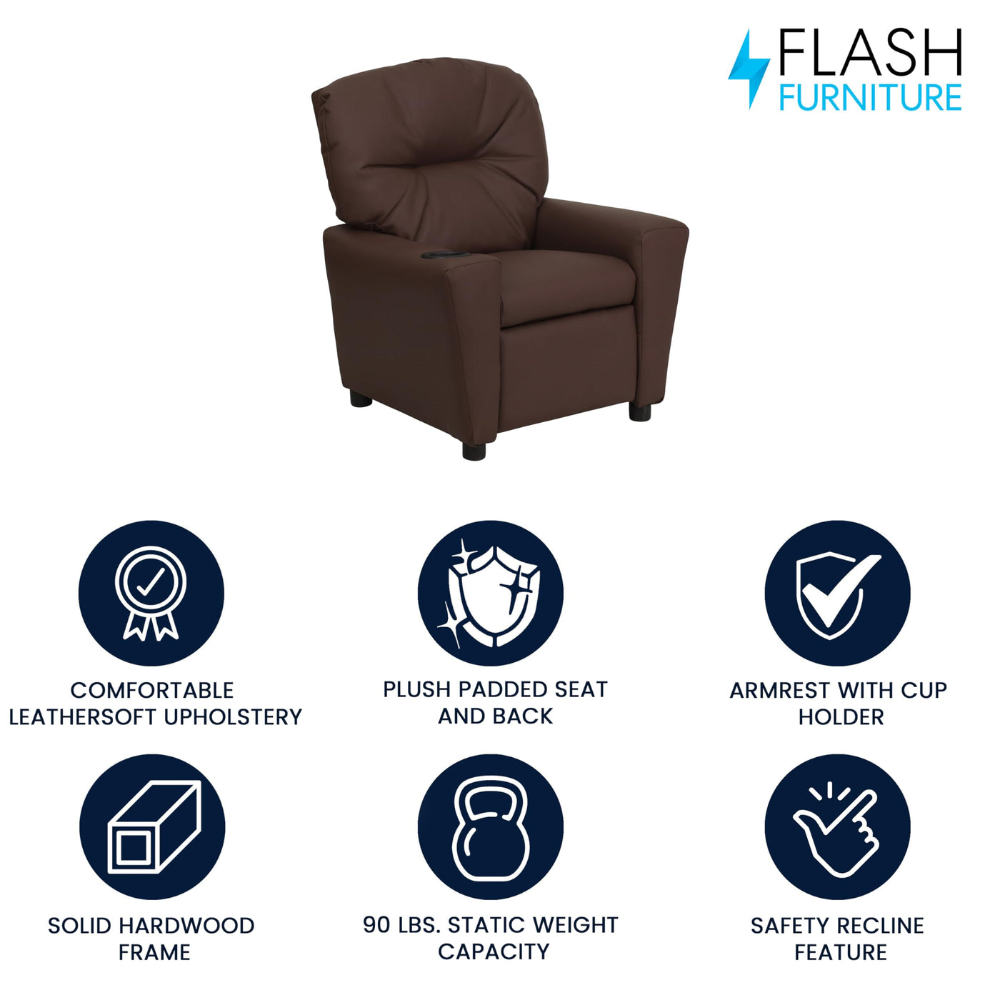 Flash Furniture Chandler LeatherSoft Kids Recliner with Cup Holder and Safety Recline, Contemporary Reclining Chair for Kids, Supports up to 90 lbs., Brown