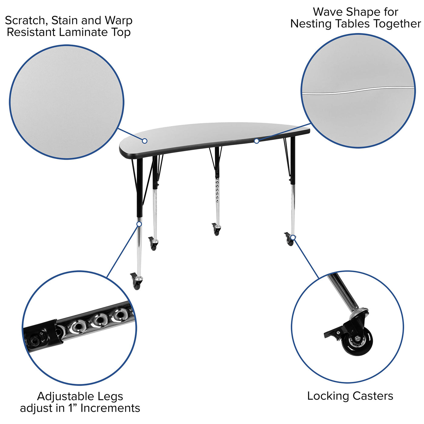 Flash Furniture Emmy Mobile 47.5" Circle Wave Flexible Laminate Activity Table Set with 18" Student Stack Chairs, Grey/Black