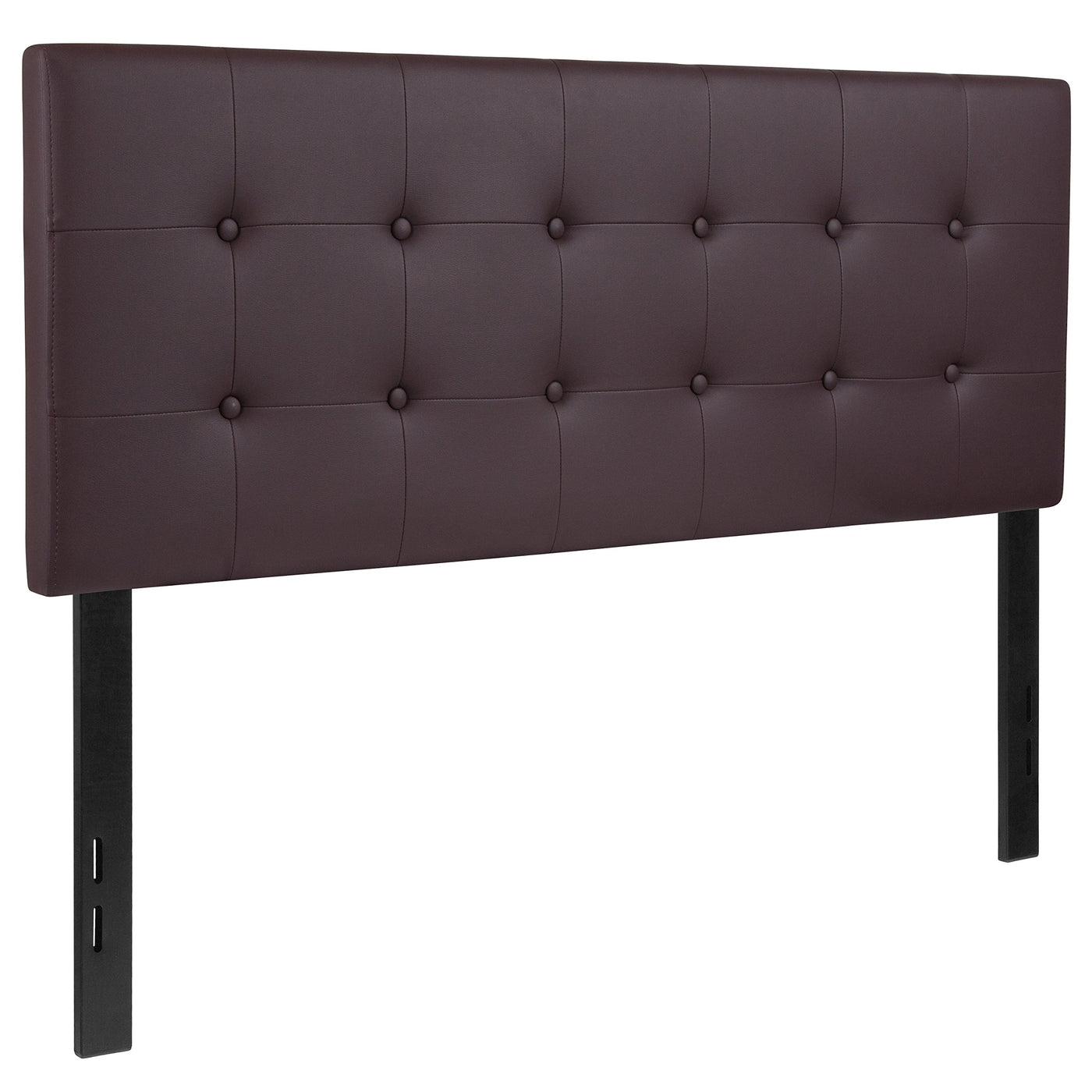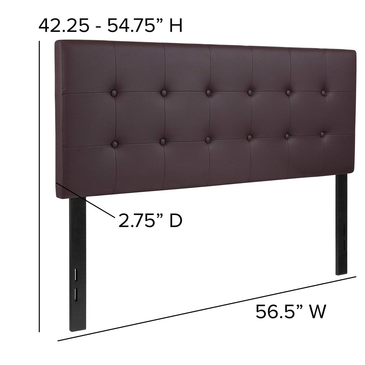 Refresh The Look Of Your Sleep Space With This Exquisite Tufted Panel Headboard. A Headboard Gives Any Bedroom A Very Personal Touch And Allows You To Show Off Your Style. This Gorgeous Brown Full Headboard Features Button Tufting And A Box Stitch Design, Vinyl Upholstery, And Includes Adjustable Metal Bed Rail Slots. The Slim Panel Will Make Your Room Feel More Spacious. Having Just A Headboard Will Provide You With Floor Space And Makes It Easy To Make Up The Bed. Whether You'Re Updating Your Master Bedroom, Guest Room Or Furnishing Your First Apartment Or Home, This Headboard Will Give A Fresh, On-Trend Look To Your Space. Packaged Neatly With The Legs Secured By Hook And Loop Backing You'Ll Have Your New Headboard Setup In No Time. This Headboard Can Easily Blend In Any Current Environment For An Easy Upgrade Choice.