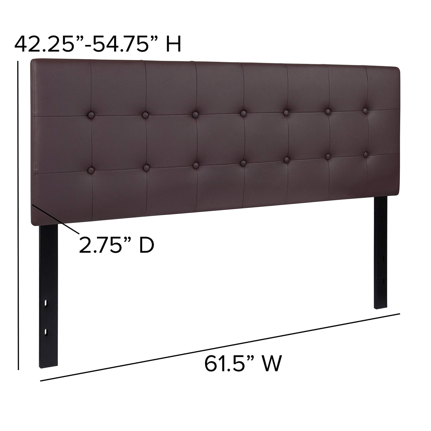 Refresh The Look Of Your Sleep Space With This Exquisite Tufted Panel Headboard. A Headboard Gives Any Bedroom A Very Personal Touch And Allows You To Show Off Your Style. This Gorgeous Brown Queen Headboard Features Button Tufting And A Box Stitch Design, Vinyl Upholstery, And Includes Adjustable Metal Bed Rail Slots. The Slim Panel Will Make Your Room Feel More Spacious. Having Just A Headboard Will Provide You With Floor Space And Makes It Easy To Make Up The Bed. Whether You'Re Updating Your Master Bedroom, Guest Room Or Furnishing Your First Apartment Or Home, This Headboard Will Give A Fresh, On-Trend Look To Your Space. Packaged Neatly With The Legs Secured By Hook And Loop Backing You'Ll Have Your New Headboard Setup In No Time. This Headboard Can Easily Blend In Any Current Environment For An Easy Upgrade Choice.