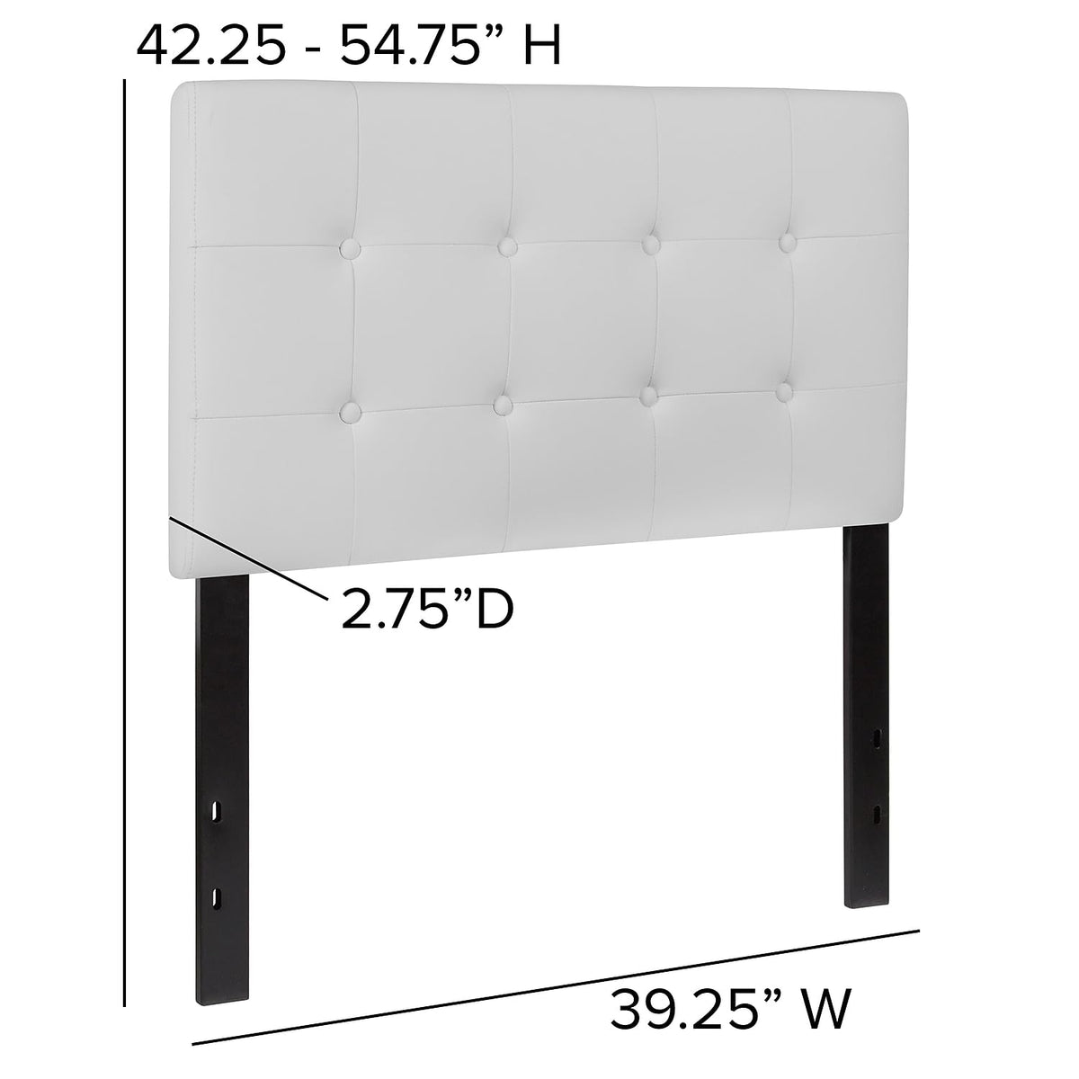 Take Your Pre-Teens Bedroom From Child-Like To Teenage-Chic With This Exquisite Tufted Panel Headboard. A Headboard Gives Any Bedroom A Very Personal Touch And Allows You To Show Off Your Style. This Gorgeous White Twin Headboard Features Button Tufting And A Box Stitch Design, Vinyl Upholstery, And Includes Adjustable Metal Bed Rail Slots. The Slim Panel Will Make Your Room Feel More Spacious. Having Just A Headboard Will Provide You With Floor Space And Makes It Easy To Make Up The Bed. Whether You'Re Updating Your Master Bedroom, Guest Room Or Furnishing Your First Apartment Or Home, This Headboard Will Give A Fresh, On-Trend Look To Your Space. Packaged Neatly With The Legs Secured By Hook And Loop Backing You'Ll Have Your New Headboard Setup In No Time. This Headboard Can Easily Blend In Any Current Environment For An Easy Upgrade Choice.