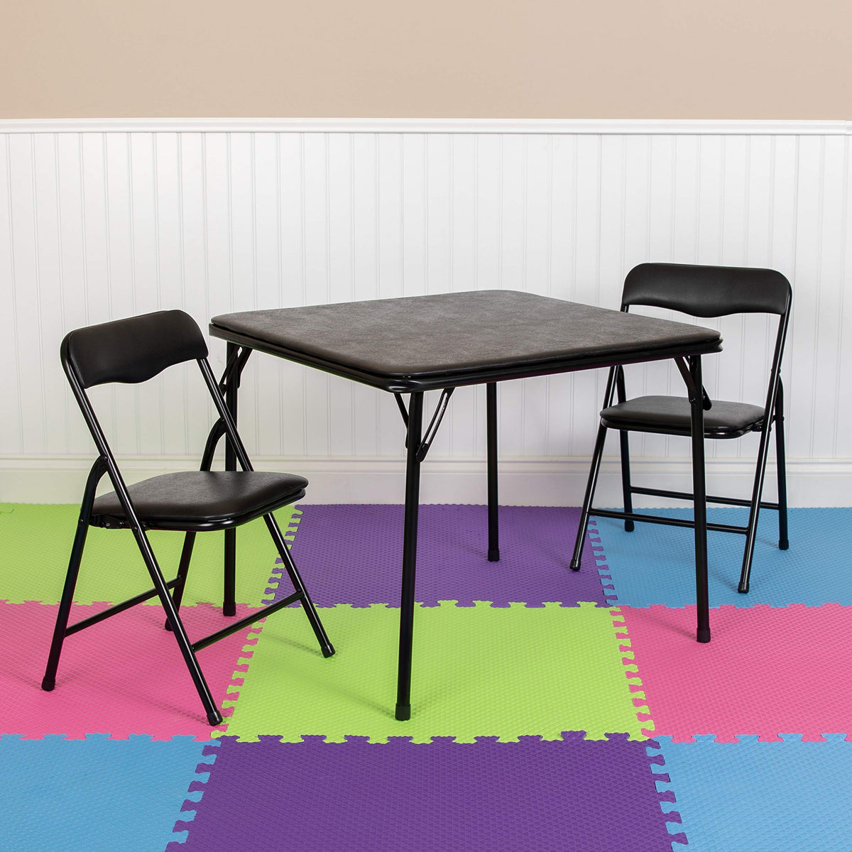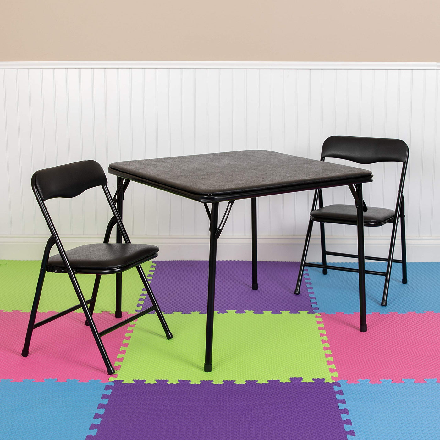 Flash Furniture Mindy Kids 3-Piece Folding Table And Chairs Set For Daycare And Classrooms, Children'S Activity Table And Chairs Set, Black