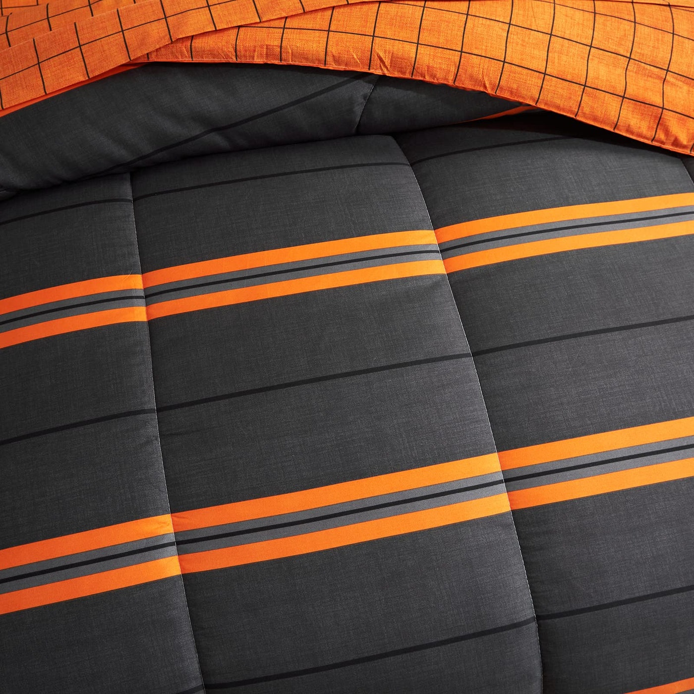Flysheep 3 Pcs Simply Comforter Set, Modern Orange And Black Striped Design, Update Your Room Look. 100% Ultra Soft Microfiber Made, Cozy And Comfy Touch, Brings Lightweight Sleep. Easy Care, Machine Washable Gentle In Cold Water.