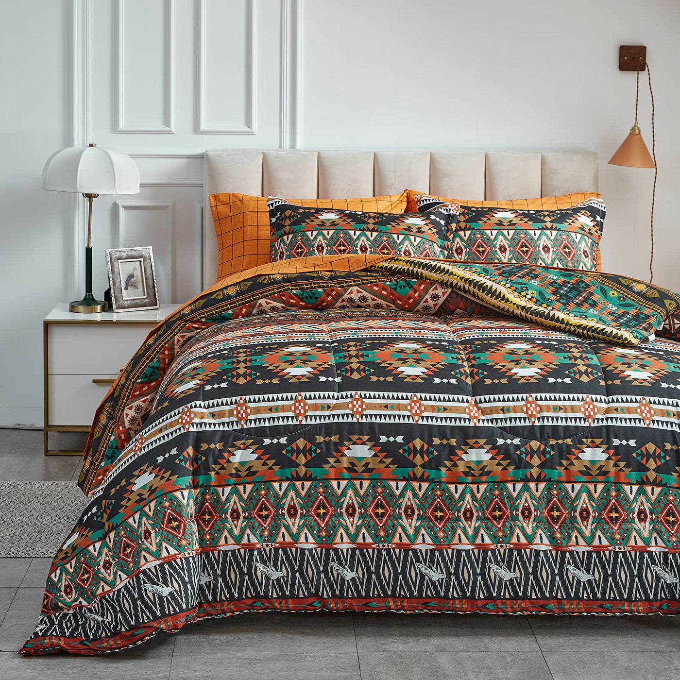 Flysheep Boho Bed In A Bag 6 Pieces Twin For Kids, Southwestern Bohemian Tribal Striped Printed, Reversible Bed Comforter Set (1